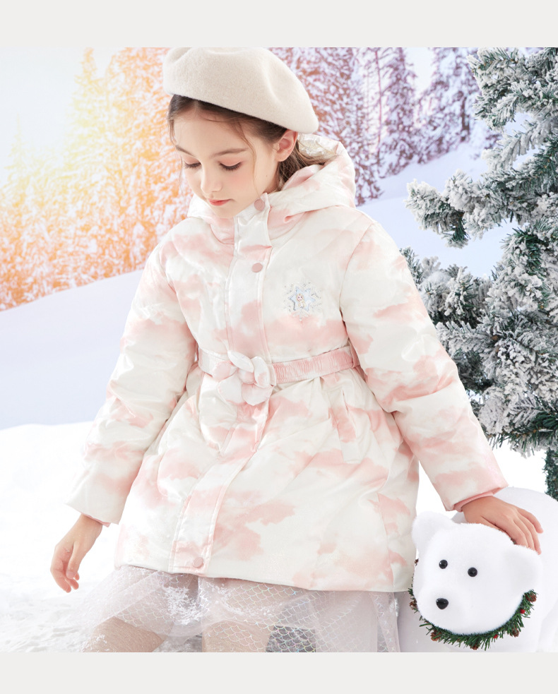 어린이 다운 재킷 겨울 2024 새로운 서양식 소녀 중간 길이 후드 자켓 큰 아이들의 두꺼운 따뜻한