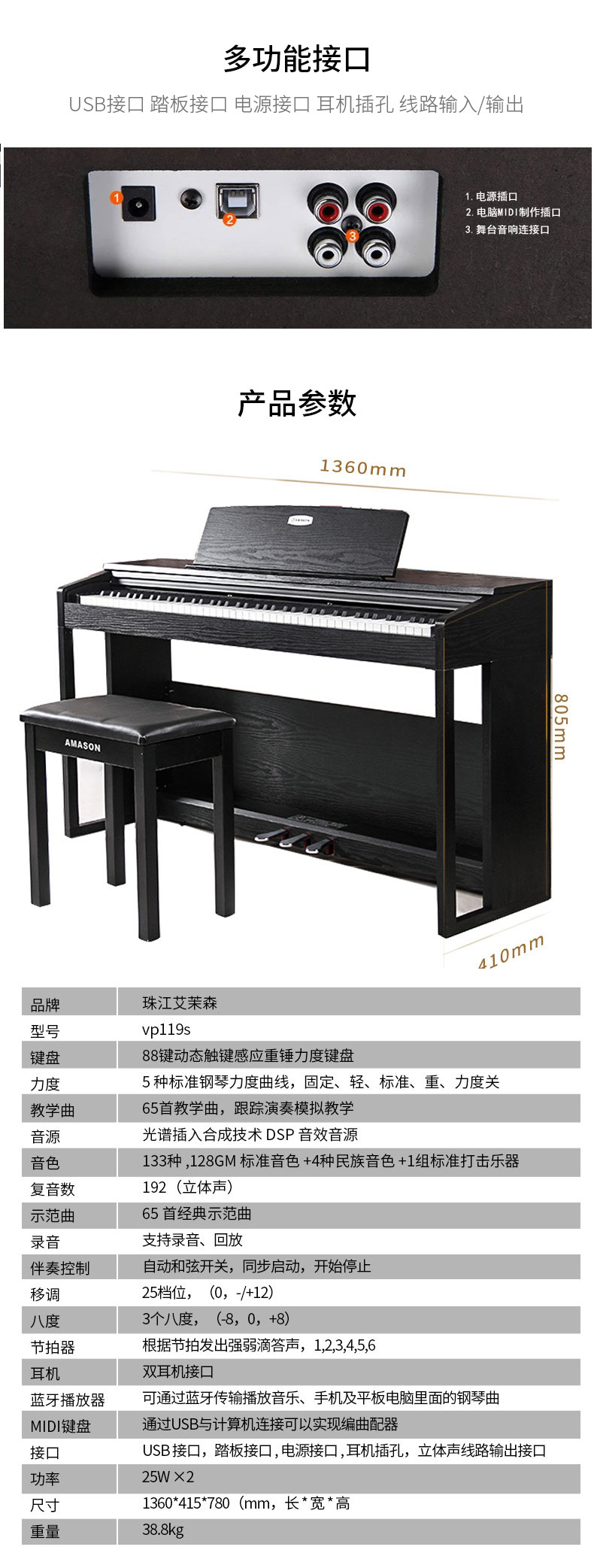 Amason (Amason) Pearl River Amson vp119S 전기 피아노 88 키 무거운 망치 홈 전문 초보자