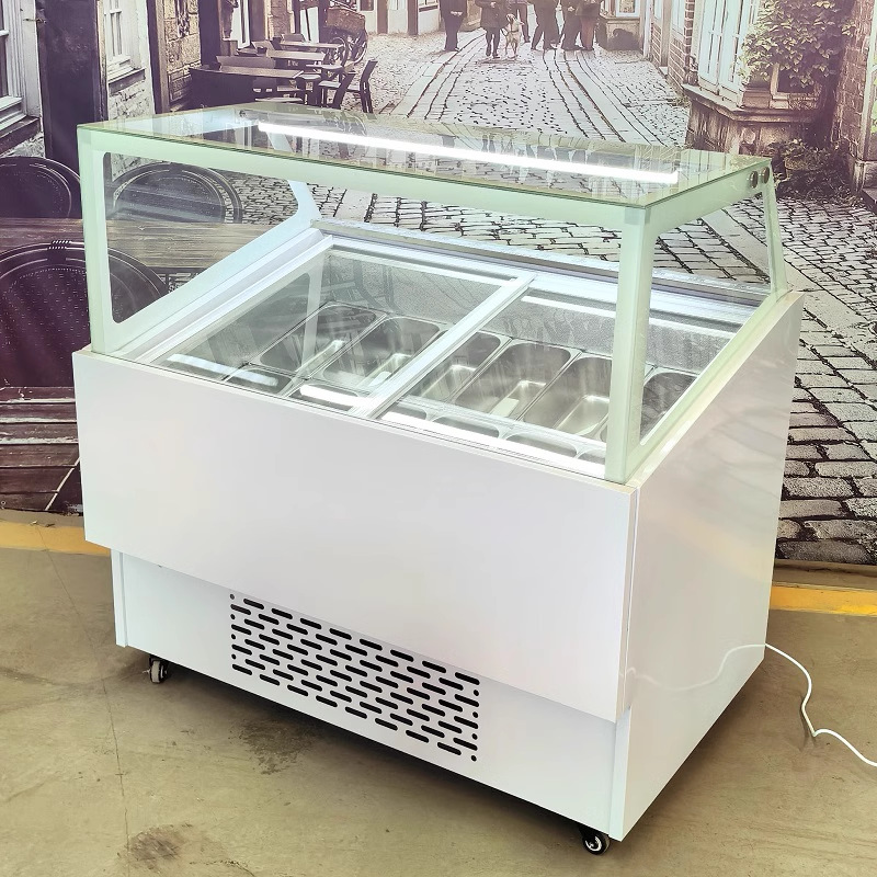 상업용 수제 두꺼운 튀김 요구르트 디스플레이 캐비닛 냉동 하드 아이스크림 캐비닛 아이스크림 아이스크림 캐비닛 직각 유리 12 상자