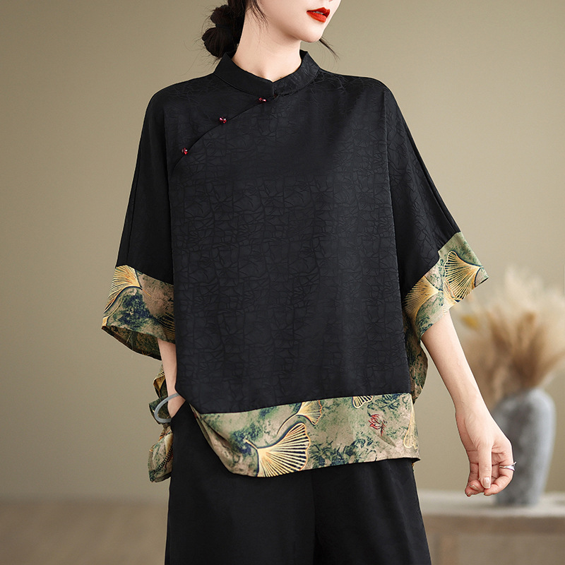 2024 Xiangyun 원사 중국 최고 국가 스타일 버튼 작은 셔츠 여성 서양식 여름 새로운 엄마 패션 Xiangyun 셔츠