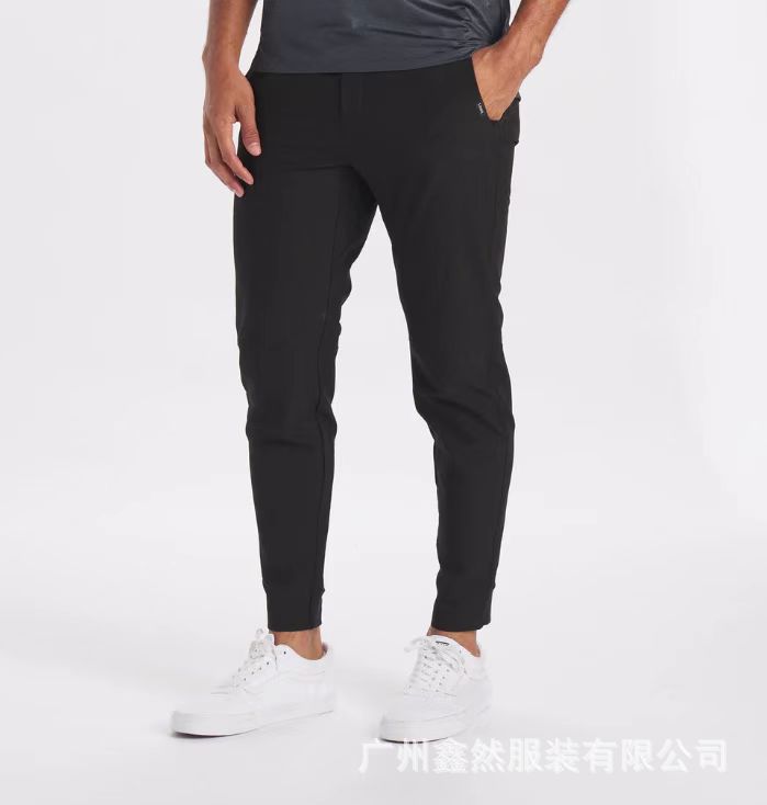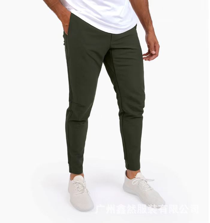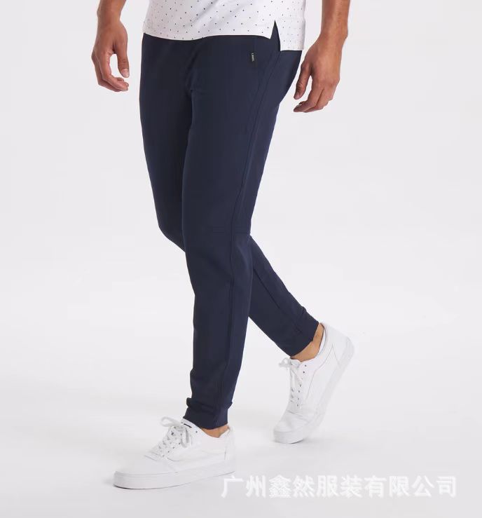 2023跨境夏季薄款冰丝休闲长裤男版简约光滑弹力免烫松紧运动裤子