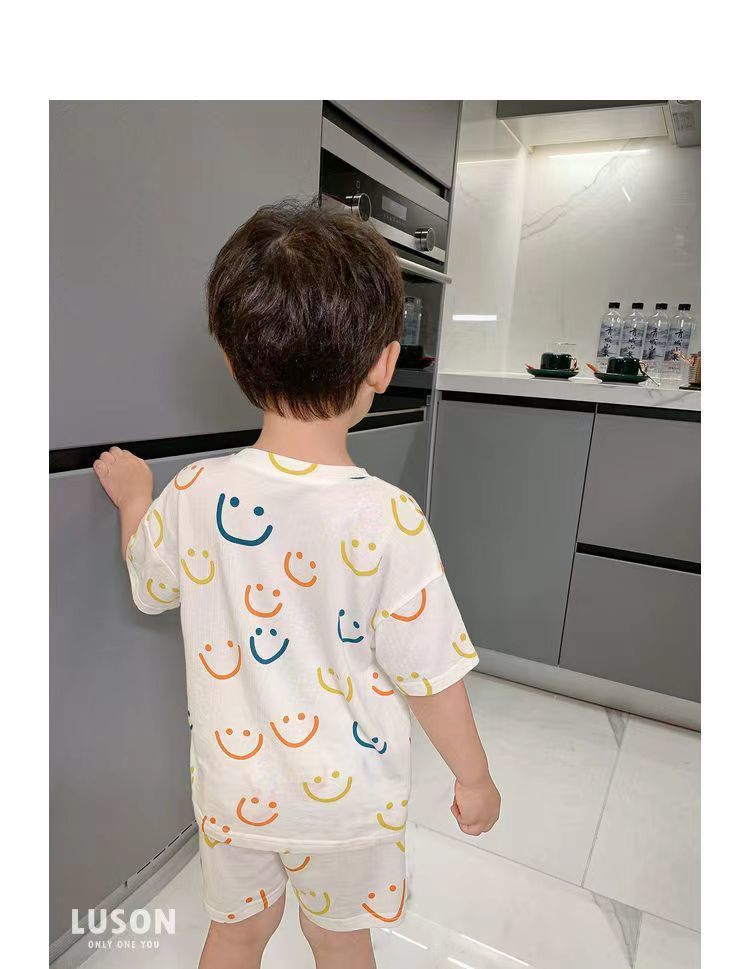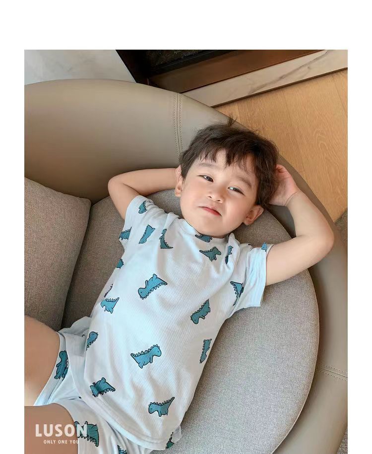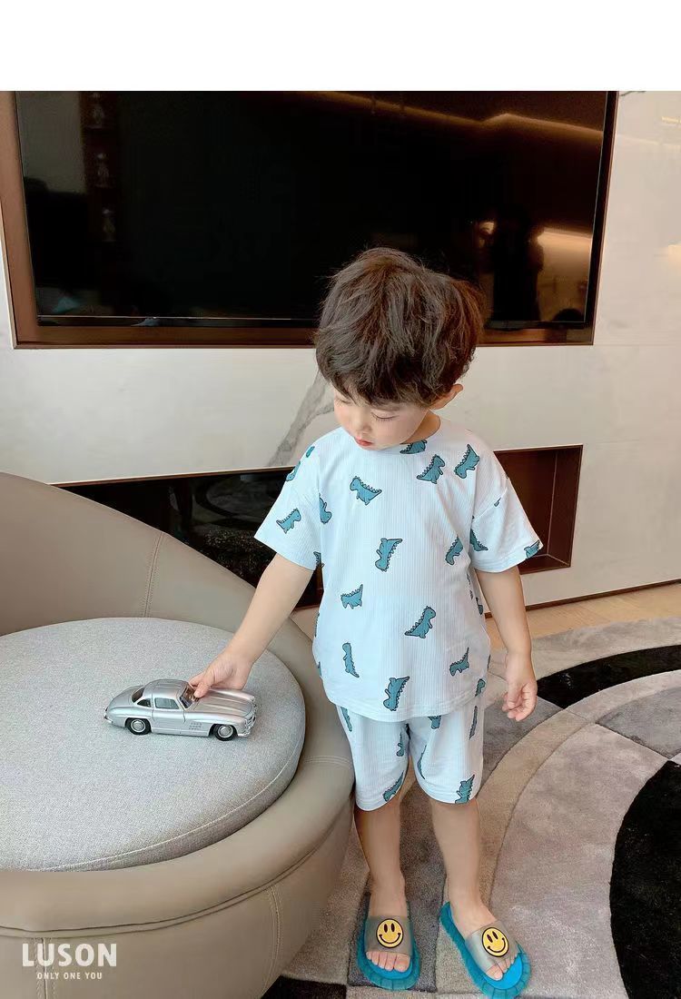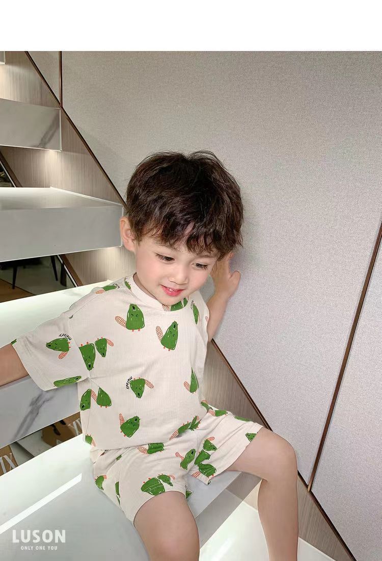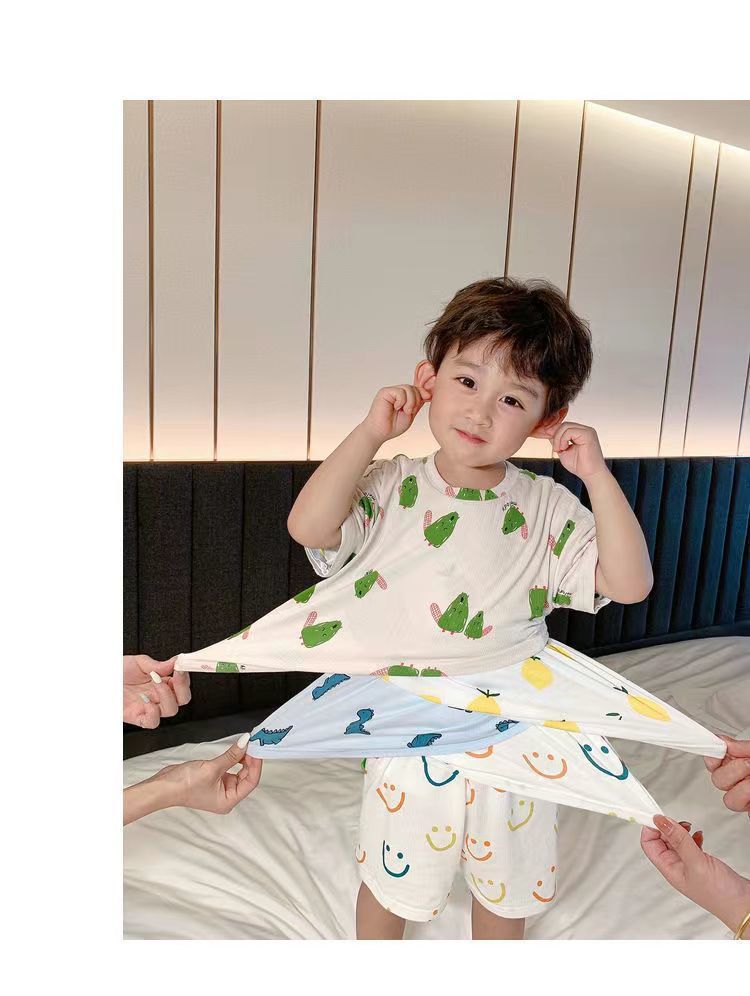 소년 아기 세트 넓은 소나무 여름 반팔 반바지 소년 소녀를위한 어린이 아이스 실크 파자마 멋진 홈 옷 에어컨 의류 유행스토어 가기