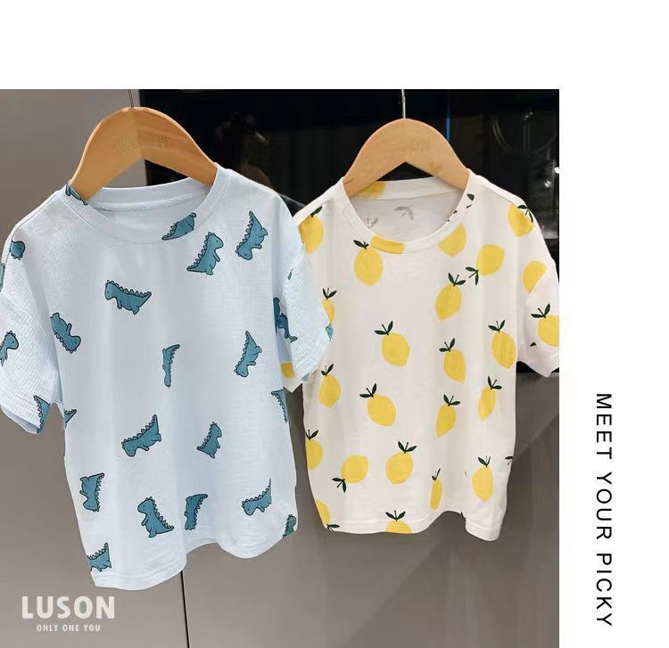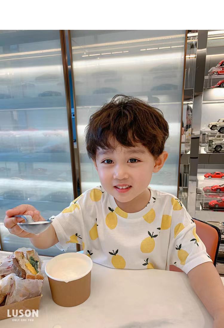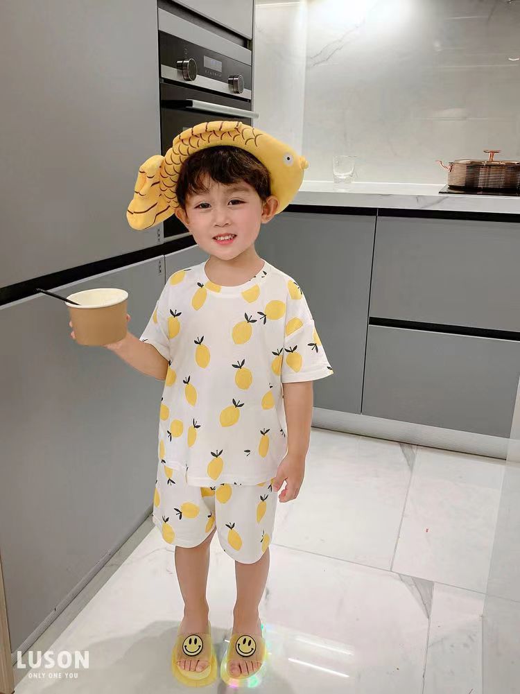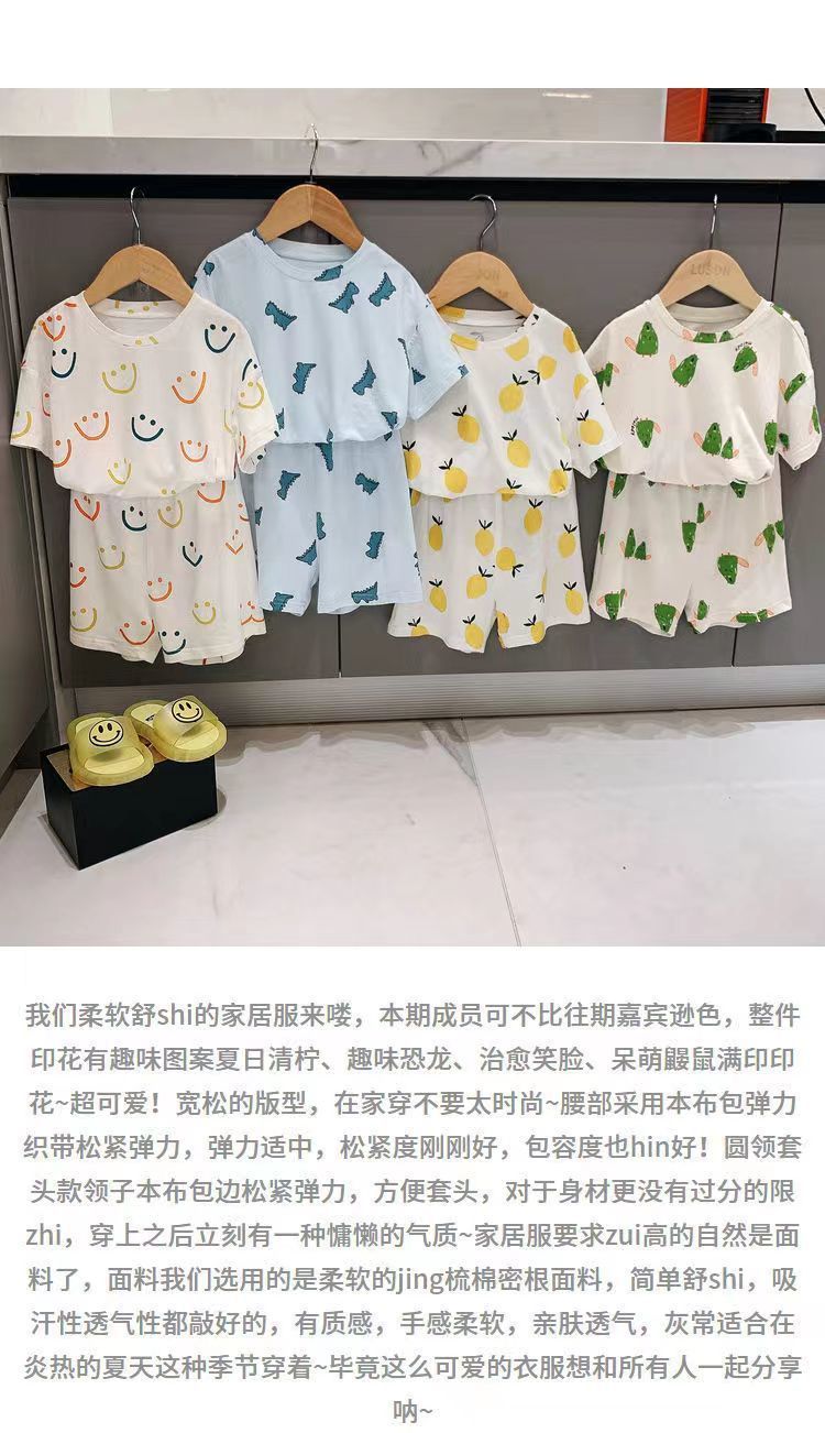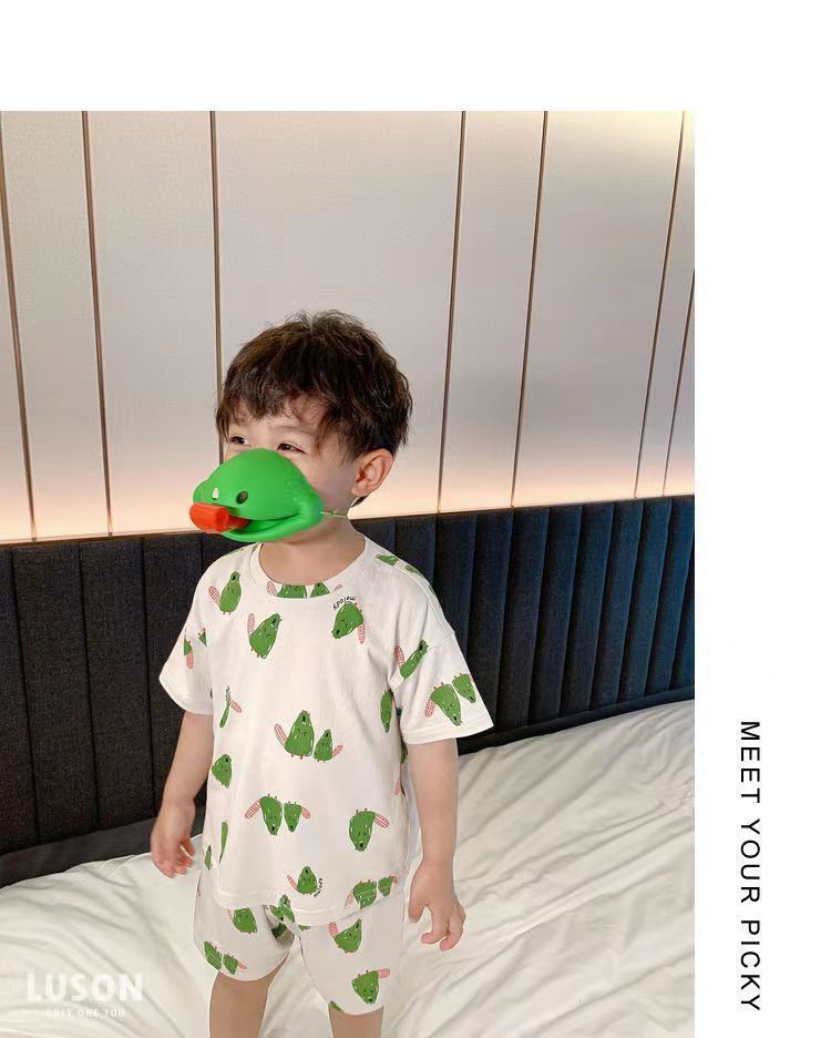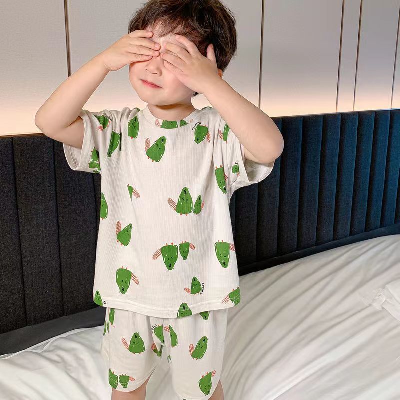 소년 아기 세트 넓은 소나무 여름 반팔 반바지 소년 소녀를위한 어린이 아이스 실크 파자마 멋진 홈 옷 에어컨 의류 유행스토어 가기