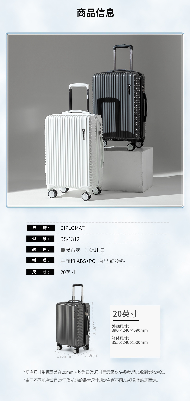 [신간] 외교관 DS-1312/20 인치 수하물 케이스 유니버설 휠 수하물 케이스 대용량 여행 가방 항공기