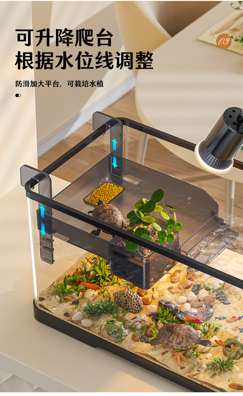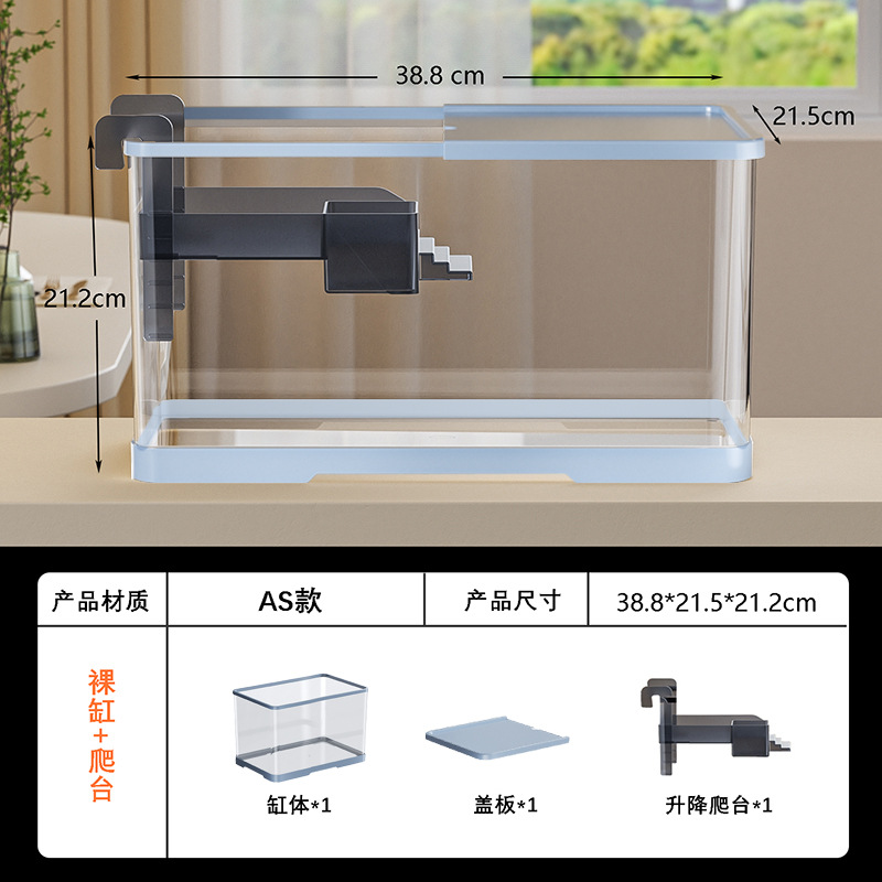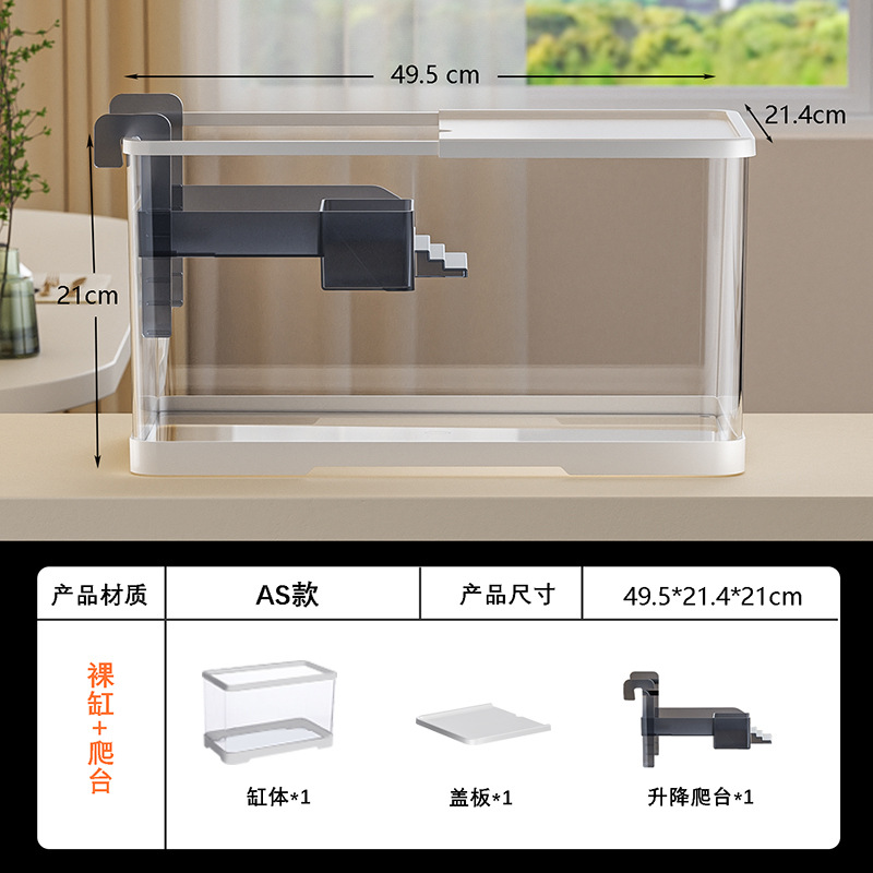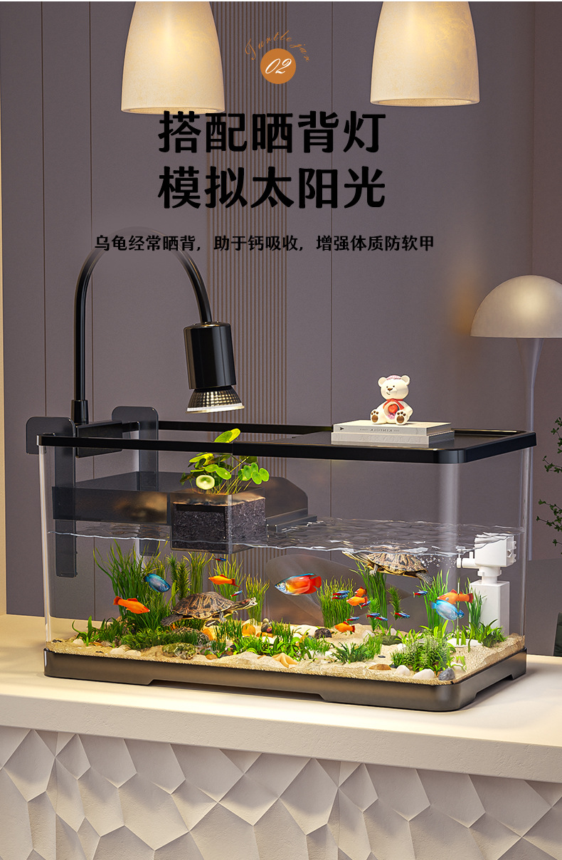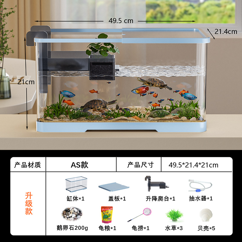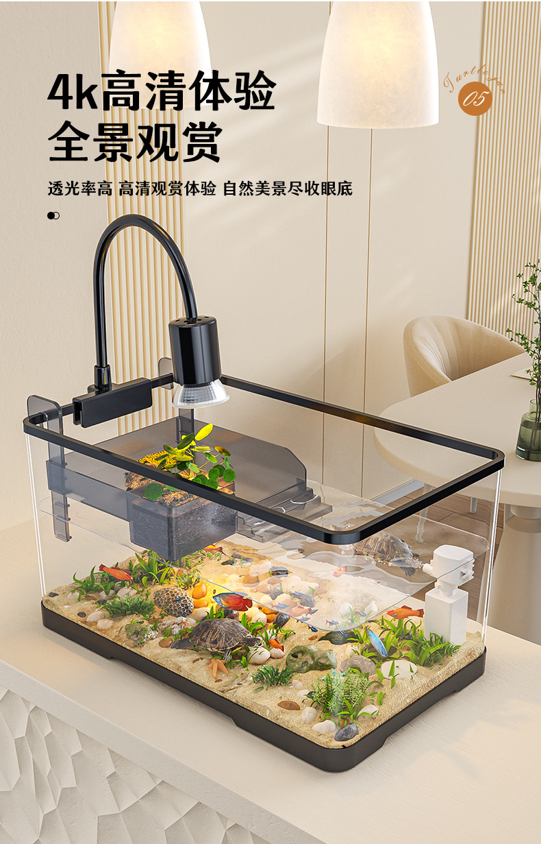 넓은 법원 물고기 거북 혼합 탱크 데스크탑 물고기 탱크 거실 전용 탱크 태양 테이블 수족관 게으른 사람 순환 통합 플라스틱