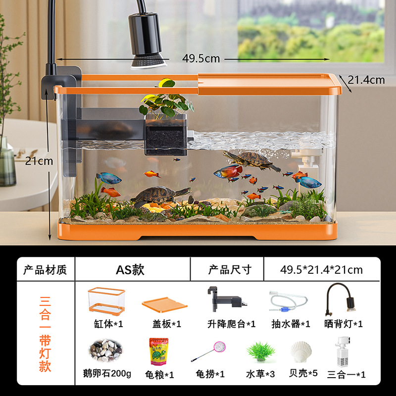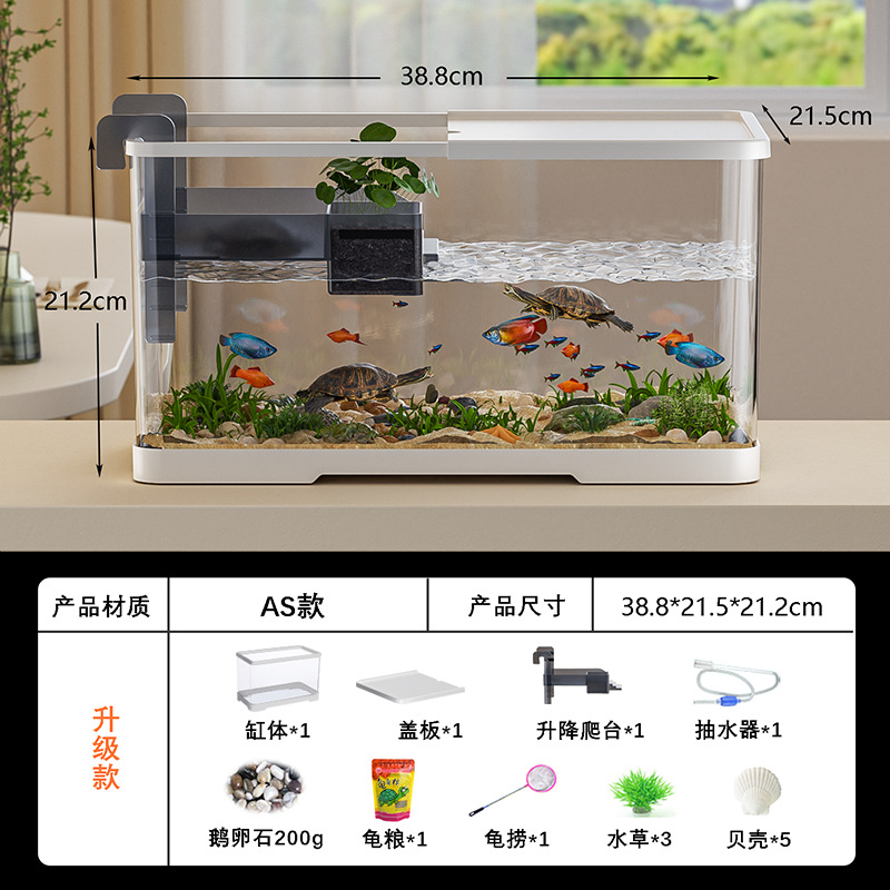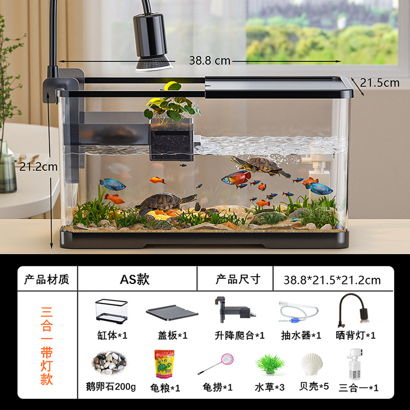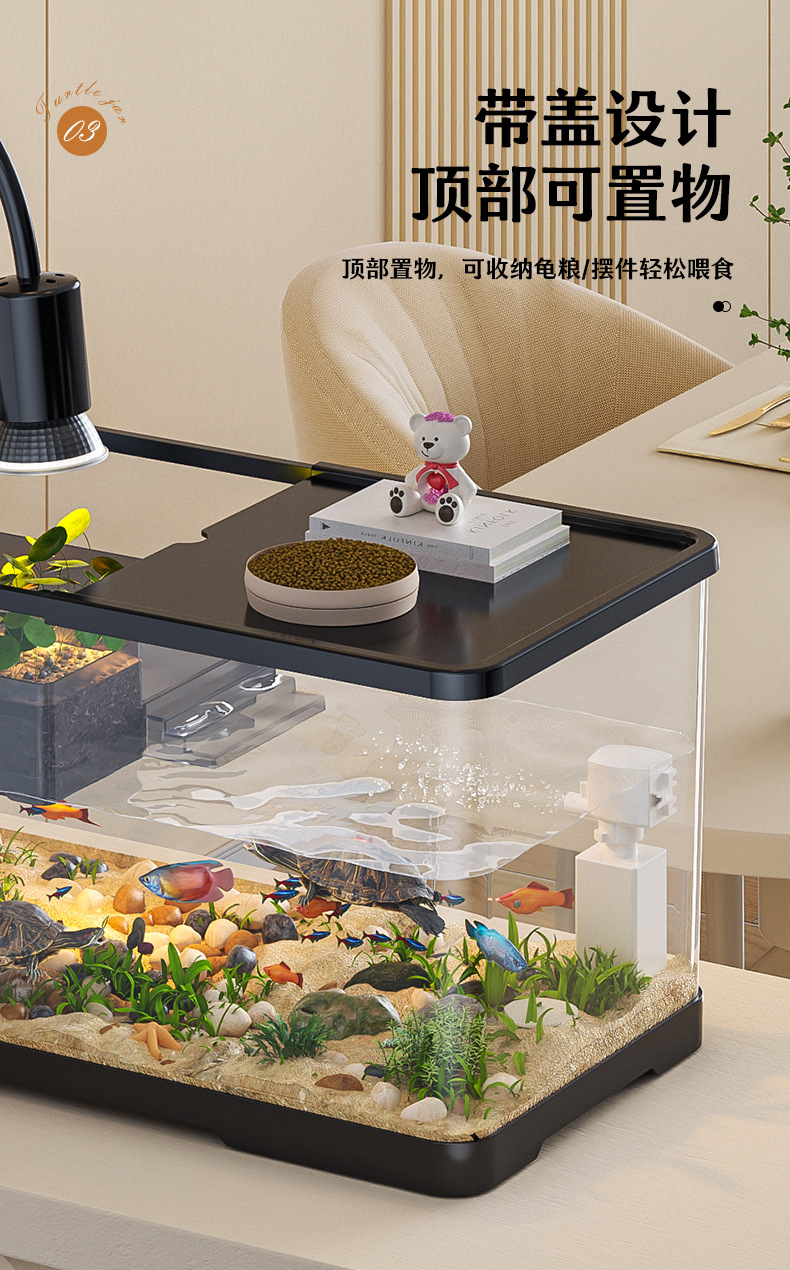 넓은 법원 물고기 거북 혼합 탱크 데스크탑 물고기 탱크 거실 전용 탱크 태양 테이블 수족관 게으른 사람 순환 통합 플라스틱스토어 가기