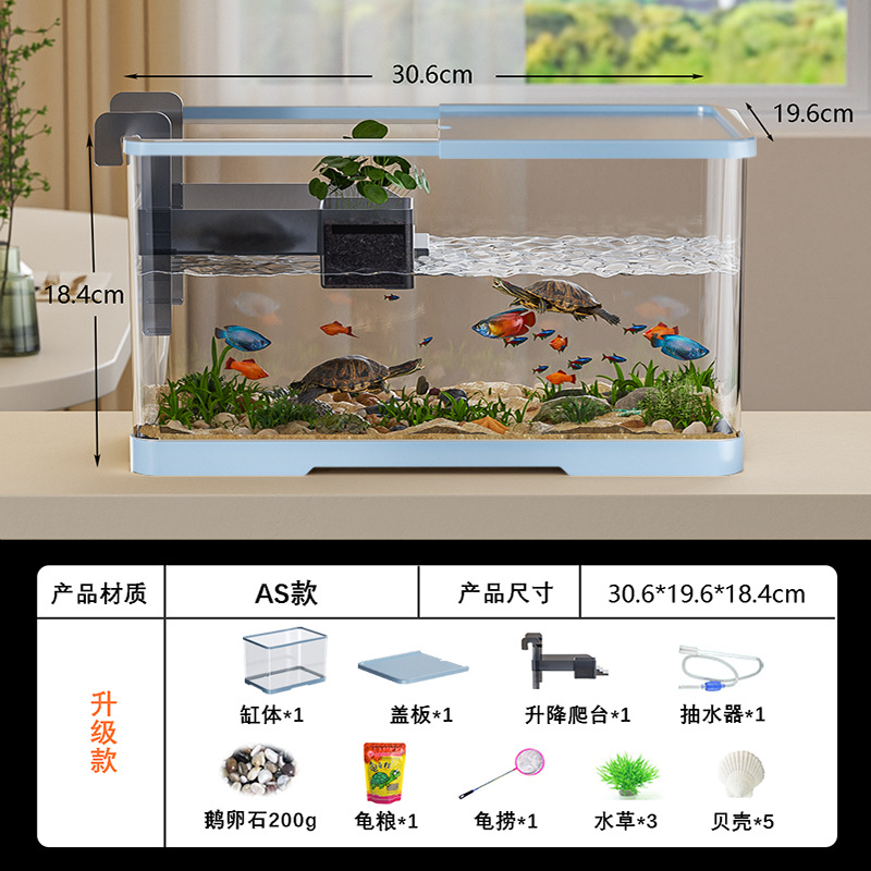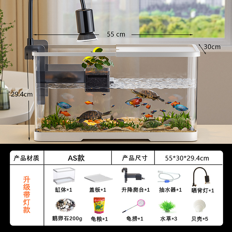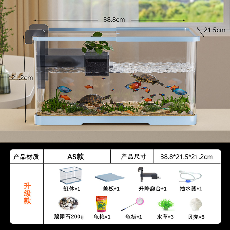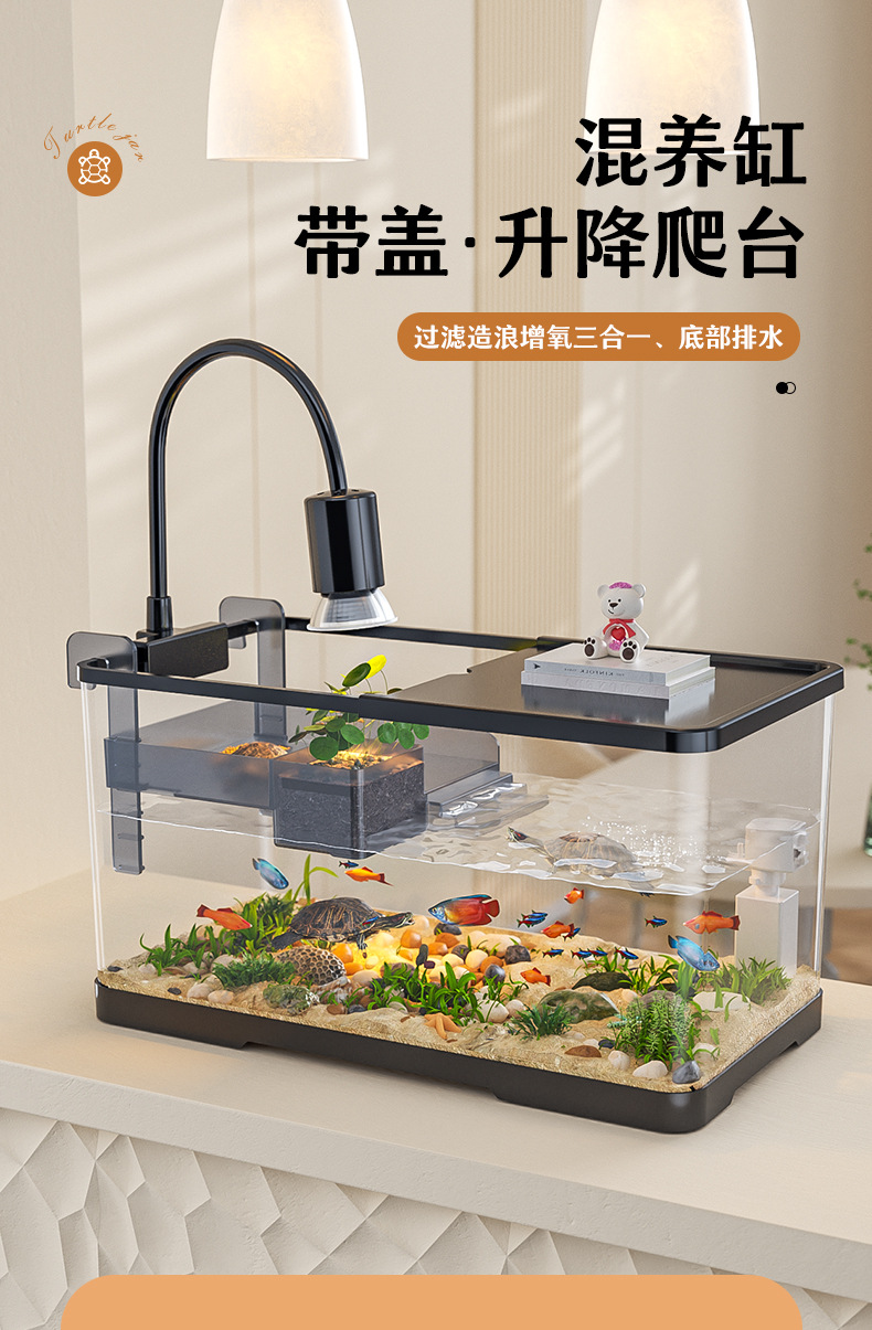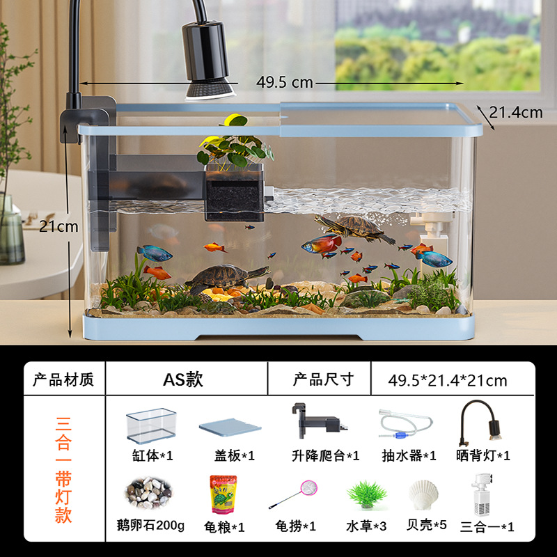넓은 법원 물고기 거북 혼합 탱크 데스크탑 물고기 탱크 거실 전용 탱크 태양 테이블 수족관 게으른 사람 순환 통합 플라스틱스토어 가기