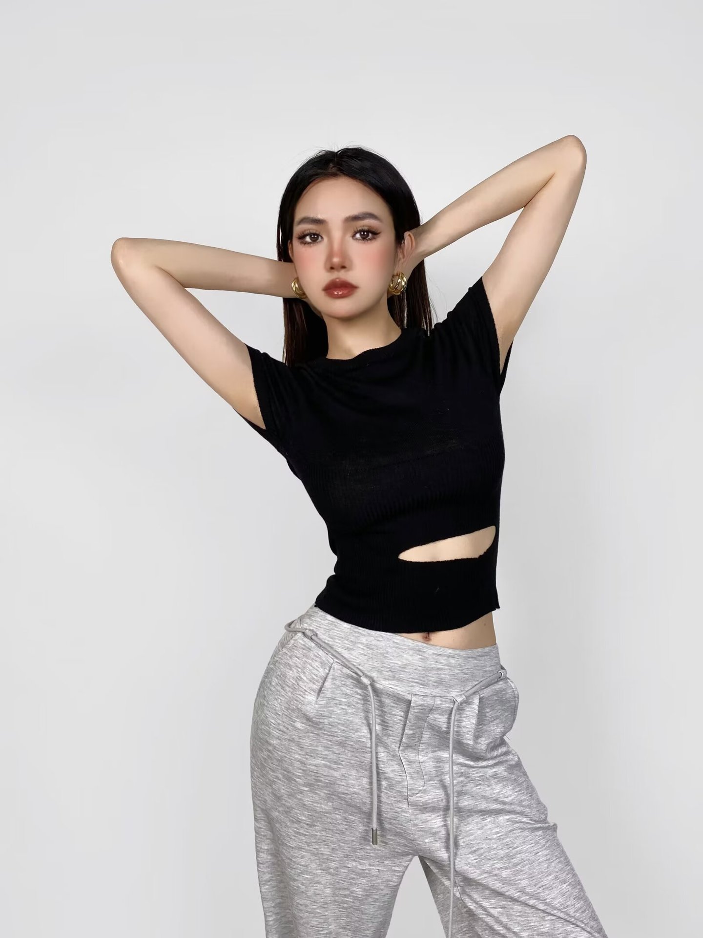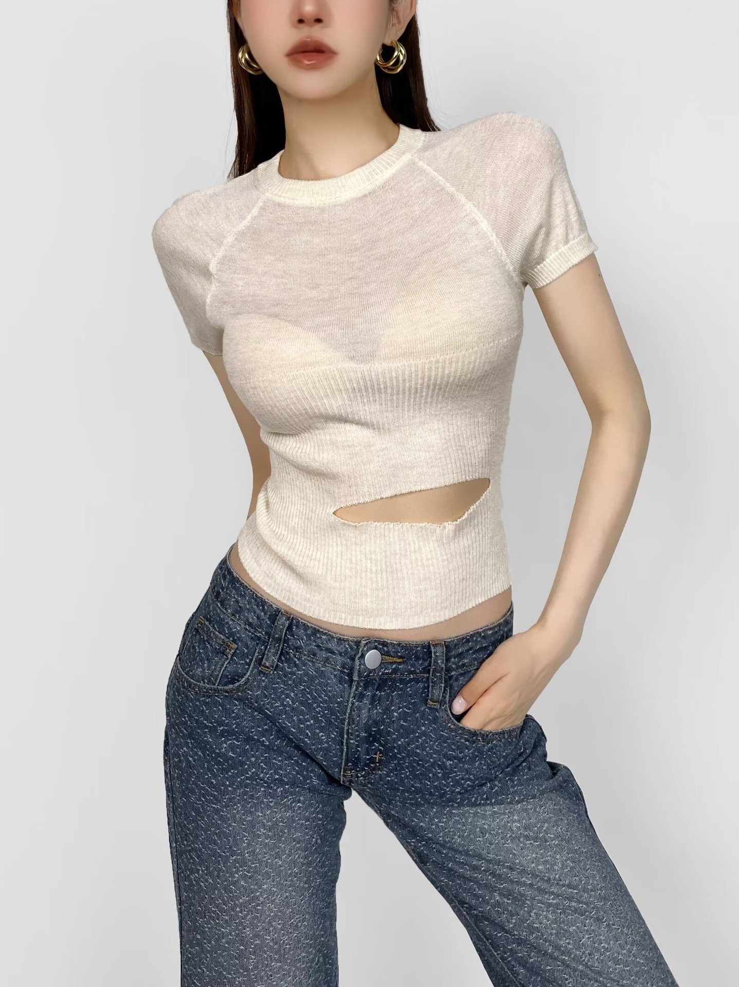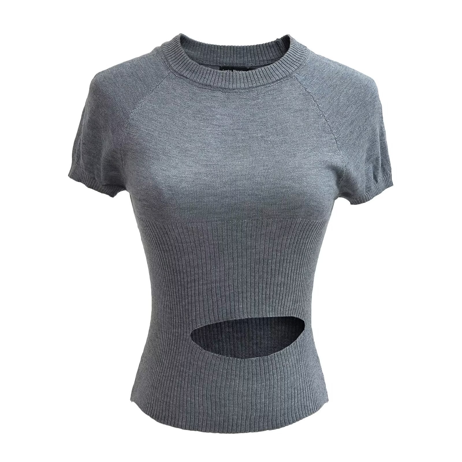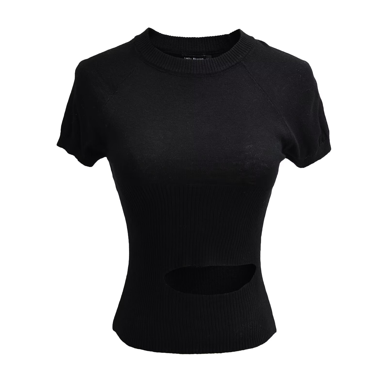 여름 섹시한 스파이스 소녀 작은 둥근 목 반팔 얇은 니트 셔츠 슬림 핏 슬리밍 올매치 쇼트 탑 허비 아웃 관점스토어 가기