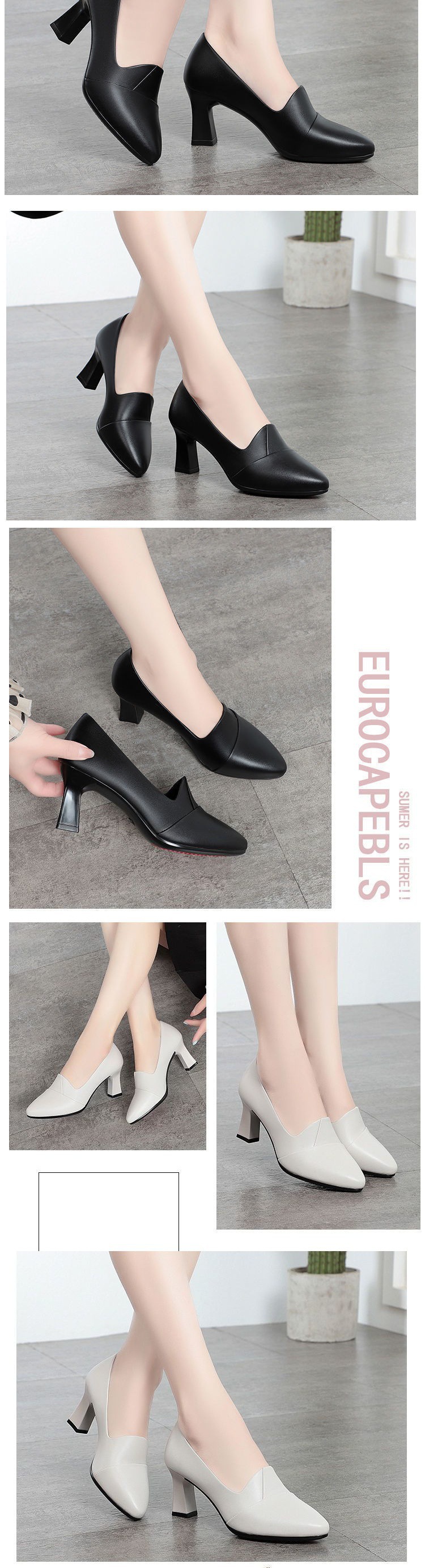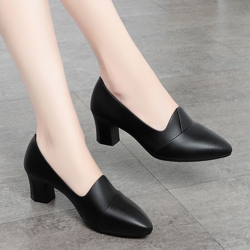 여자를위한 가죽 신발 2023 인터넷 연예인 부드러운 가죽 어머니 봄과 가을 새로운 중간 두꺼운 뒤꿈치 싱글 레이어 신발 올 매치 프로 스몰스토어 가기