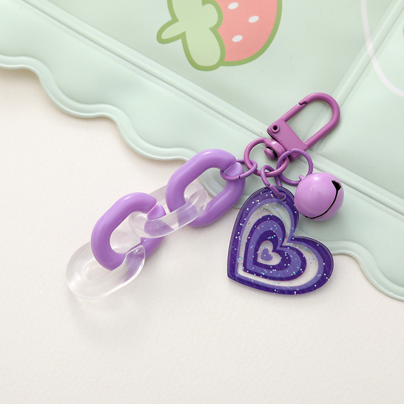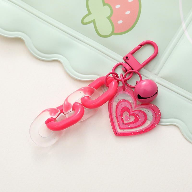 도파민 캔디 컬러 반짝이 아크릴 사랑 벨 키 체인 작은 신선한 액세서리 작은 선물 가방 펜던트