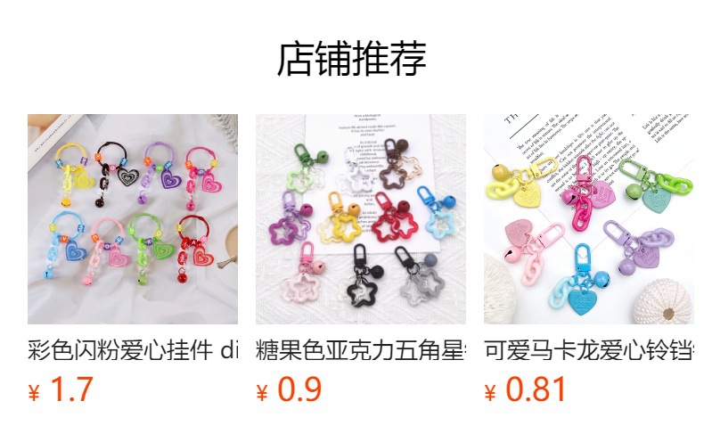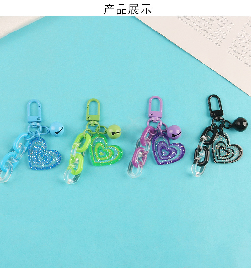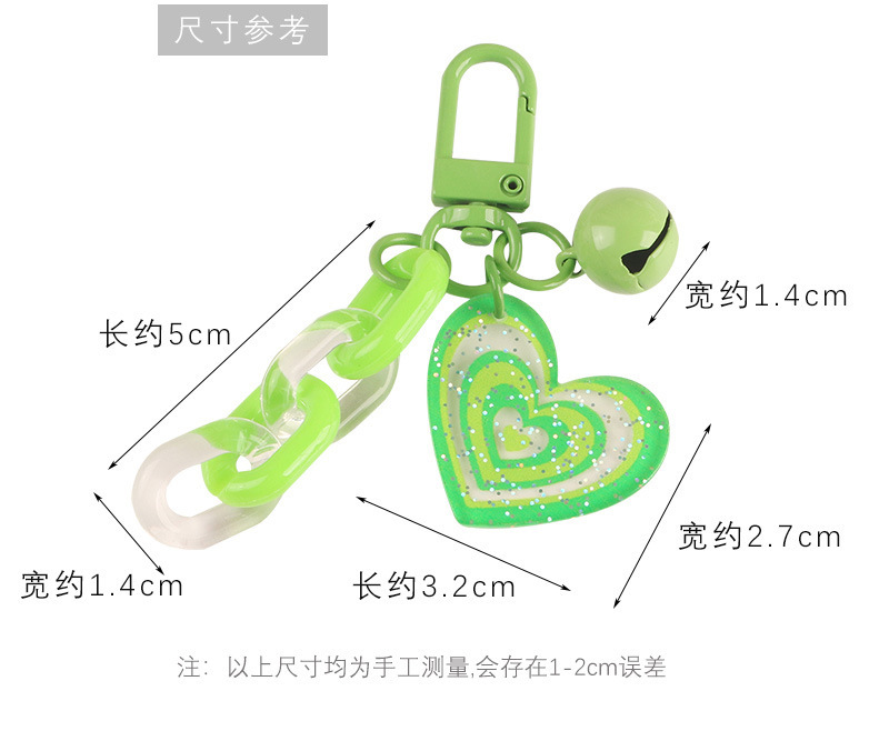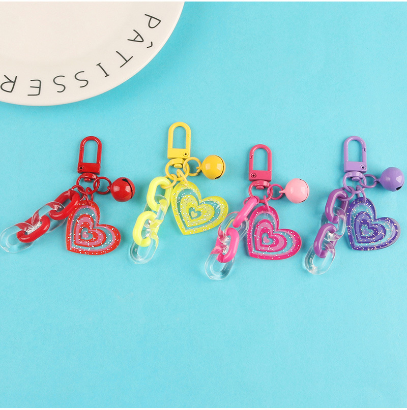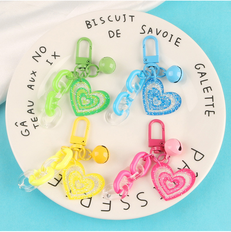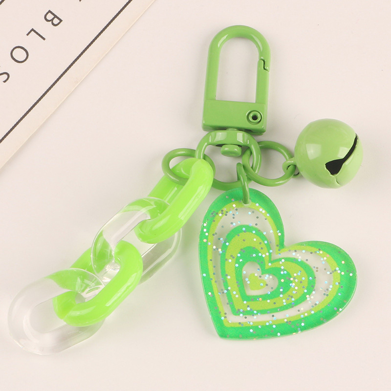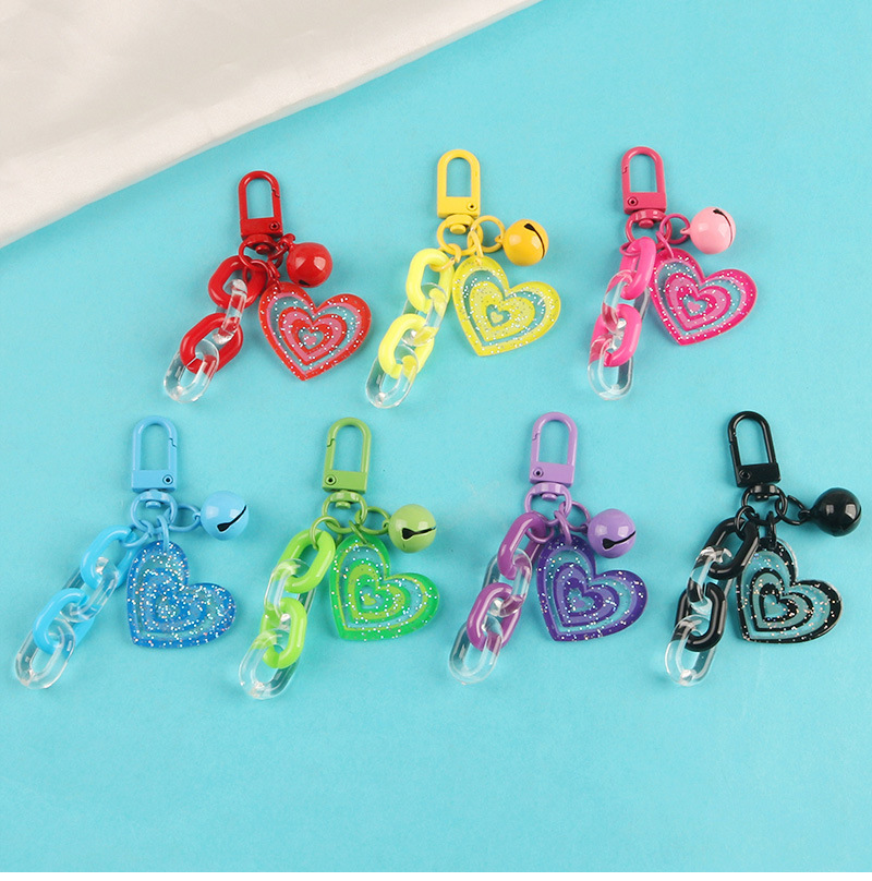 도파민 캔디 컬러 반짝이 아크릴 사랑 벨 키 체인 작은 신선한 액세서리 작은 선물 가방 펜던트스토어 가기