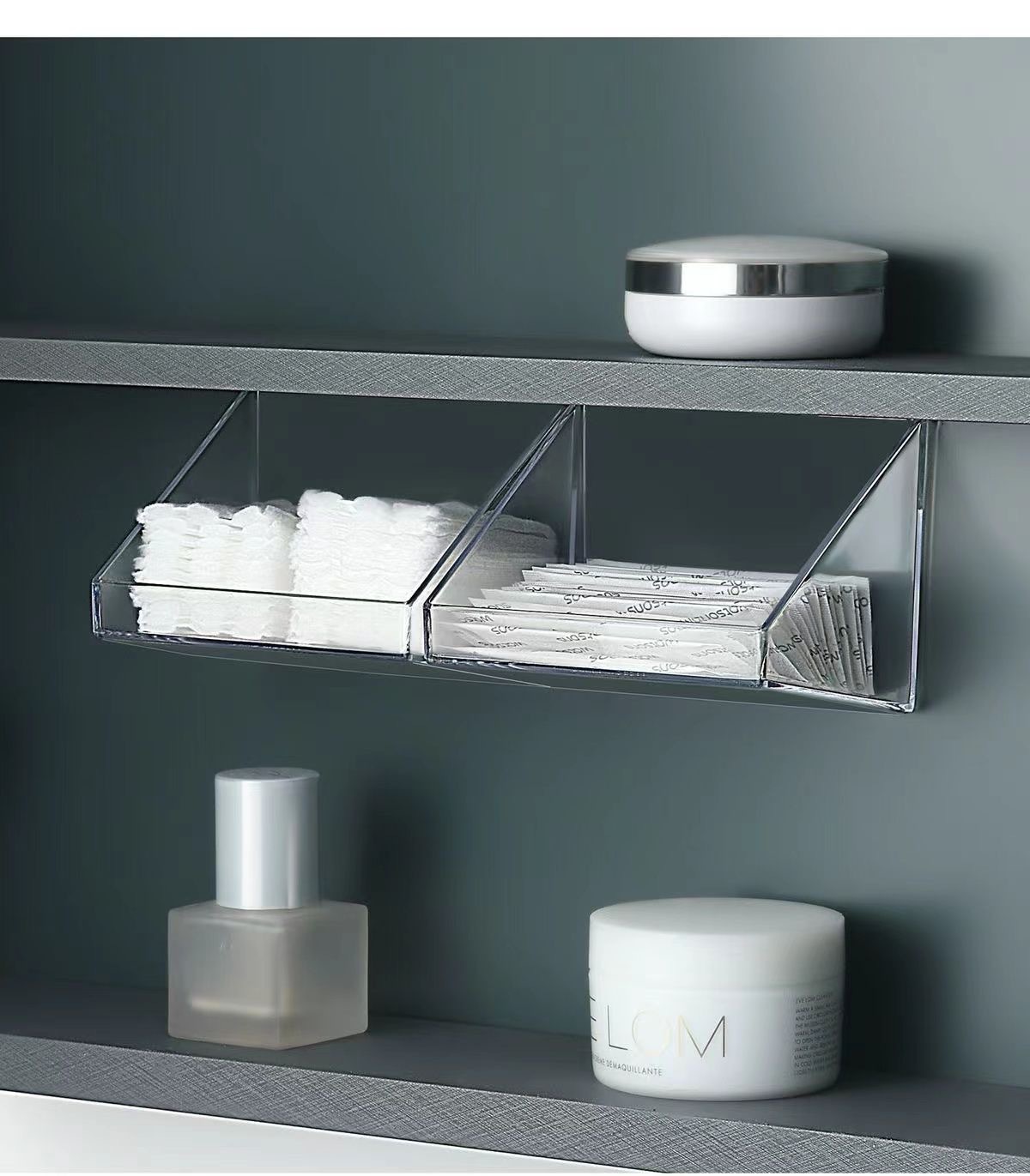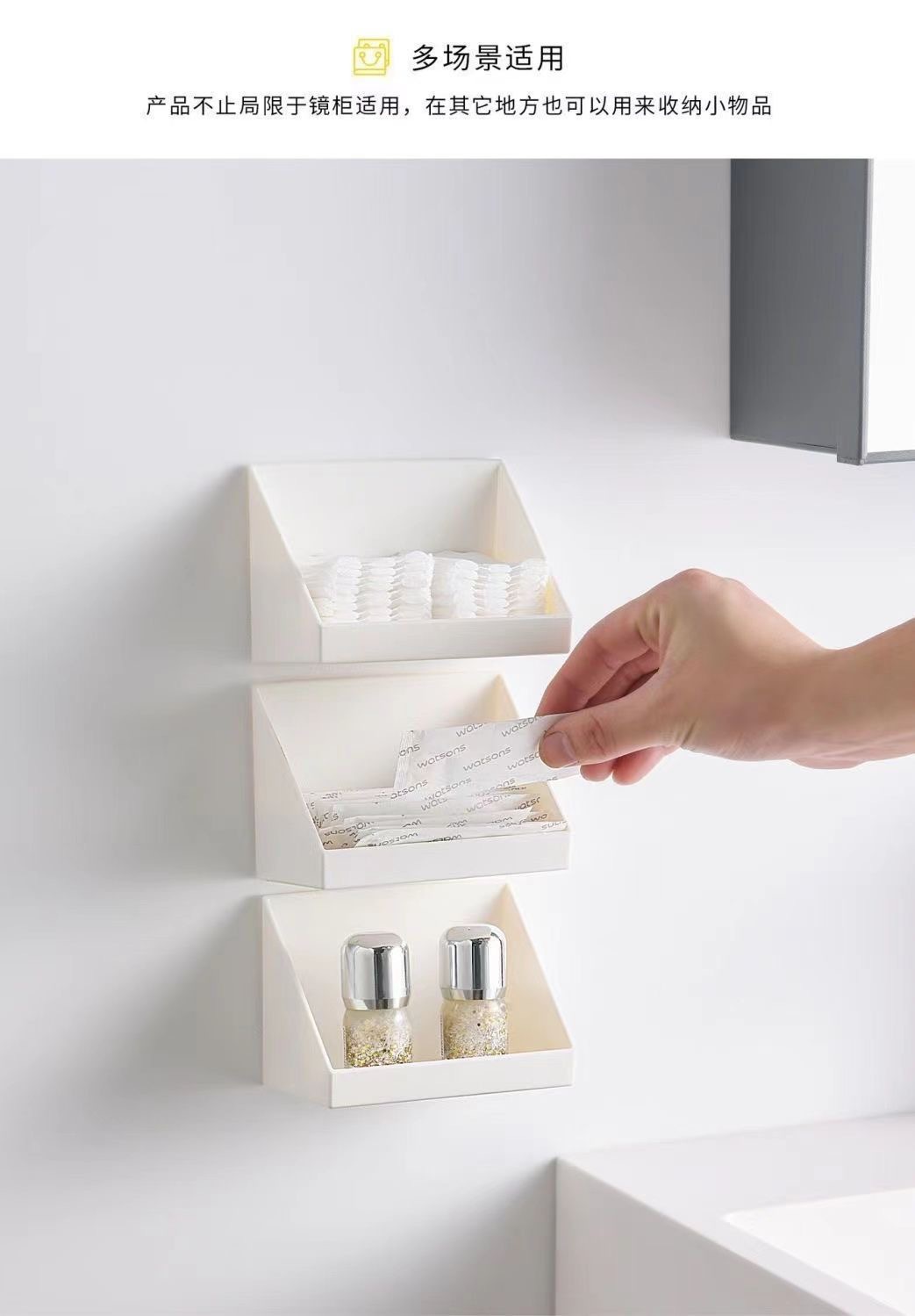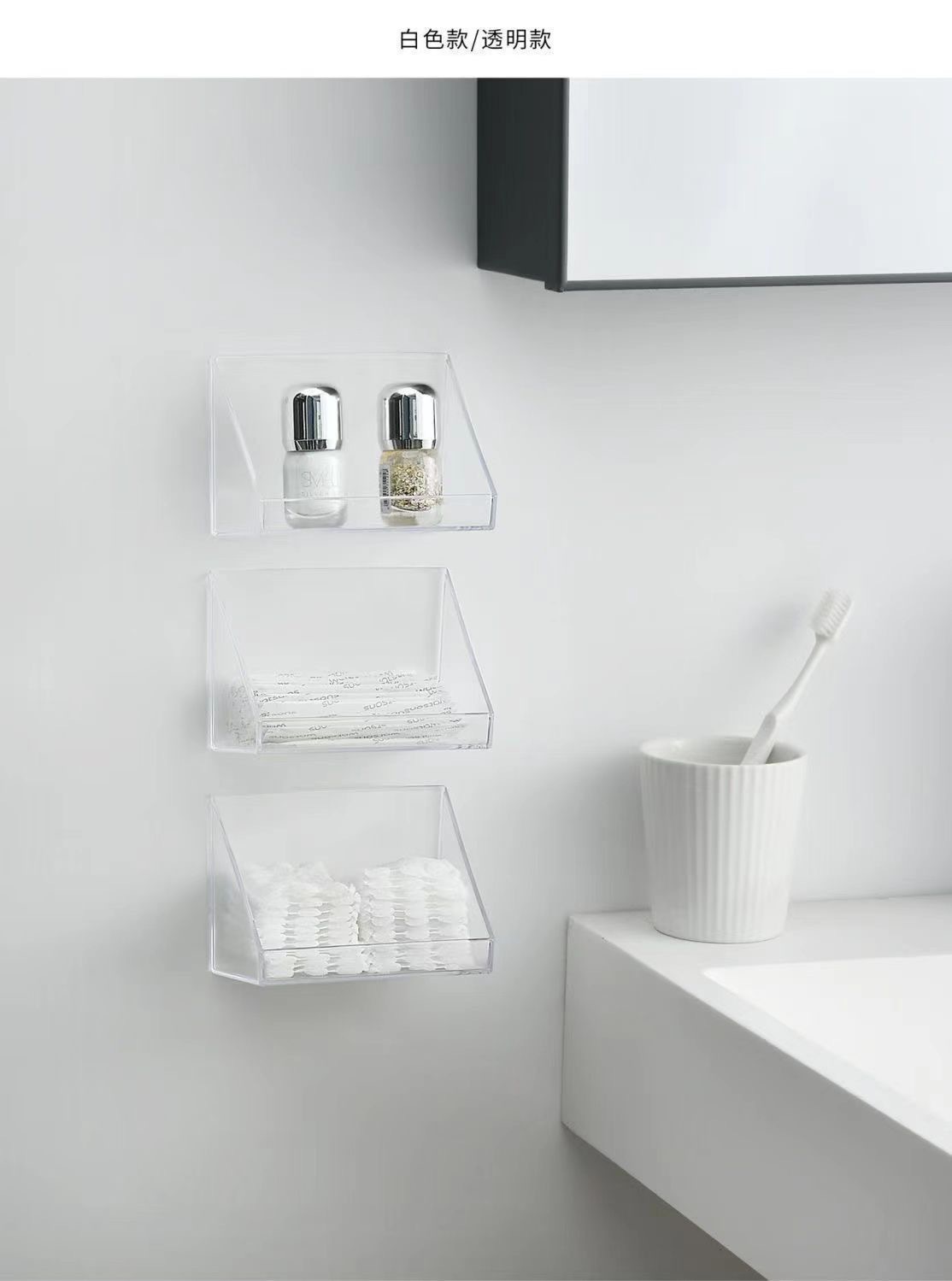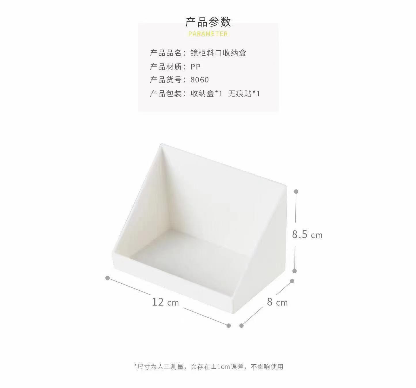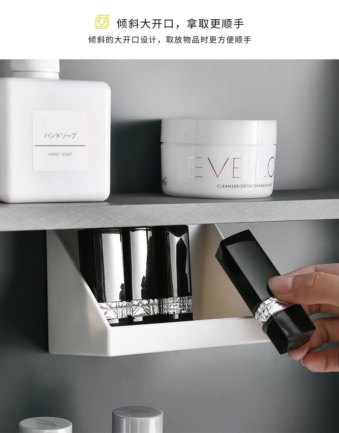 거울 캐비닛 저장 상자 beveled 저장 상자 욕실 립스틱 화장품 분류 마무리 상자 비 천공 경사 보관 랙스토어 가기