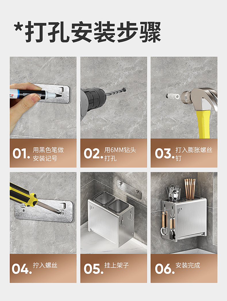 2025 새로운 주방 칼 홀더 보관함 다기능 조리대 벽걸이 형 칼과 젓가락 케이지 통합 보관함 랙스토어 가기