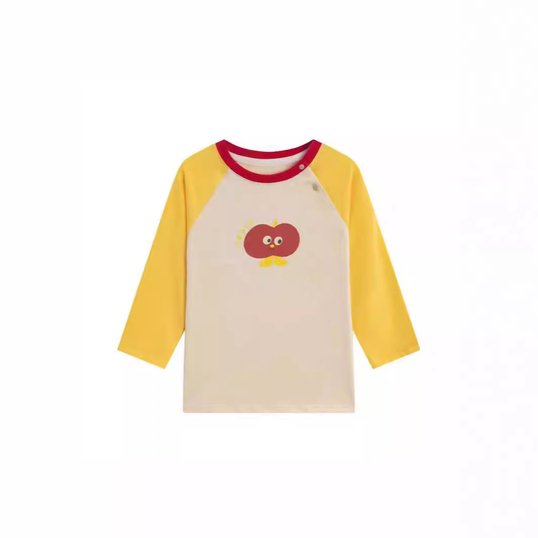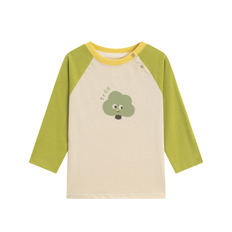 [5A 항균] 젊은 나무 아기 만화 긴 소매 둥근 목 대비 티셔츠 느슨한 부드러운 조커 탑 24C02