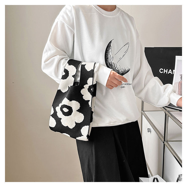 여성용 숄더백, 니트백, 여성용 핸드백, 신상 토트백, 귀여운 일본식 및 한국식 다용도 업무용 도시락 가방