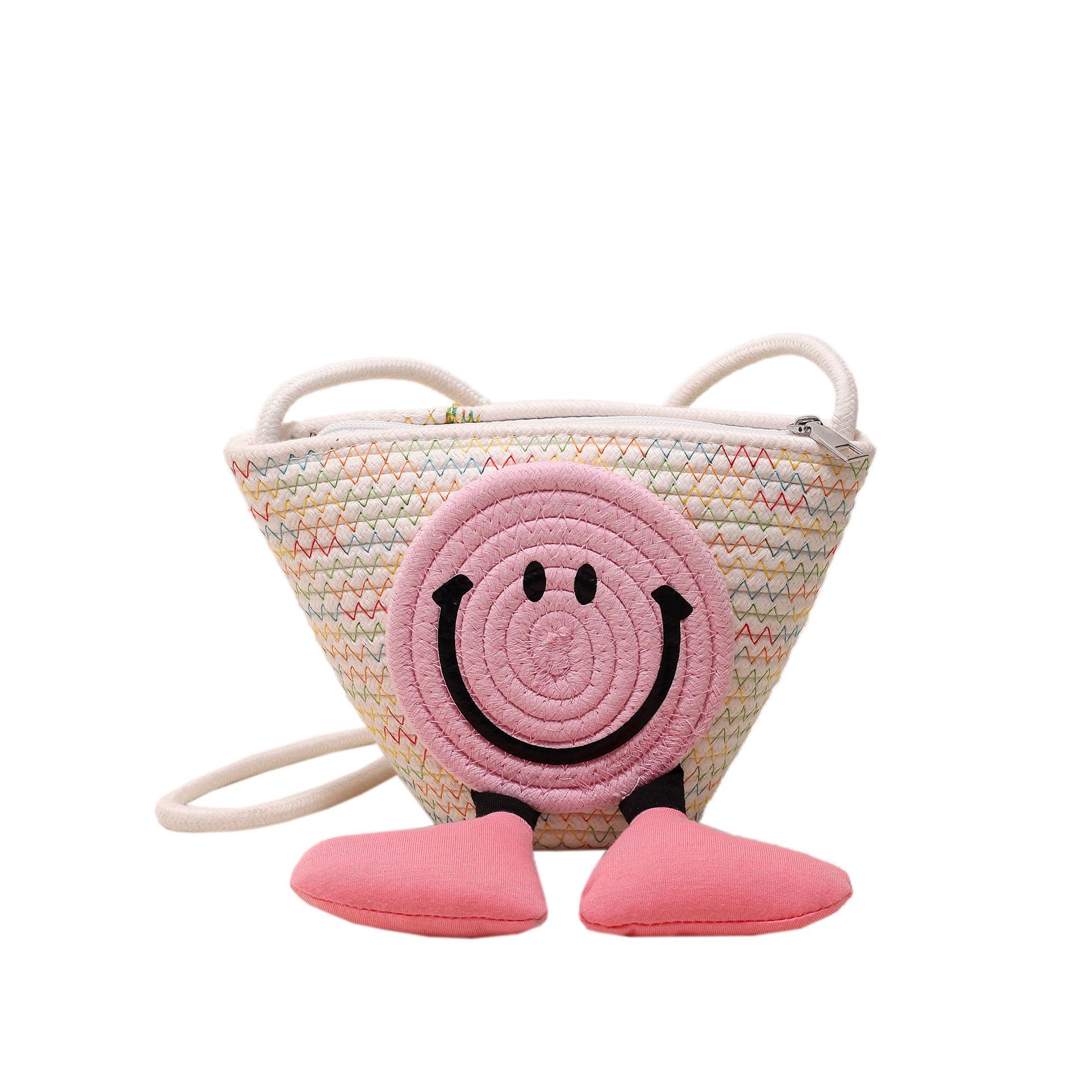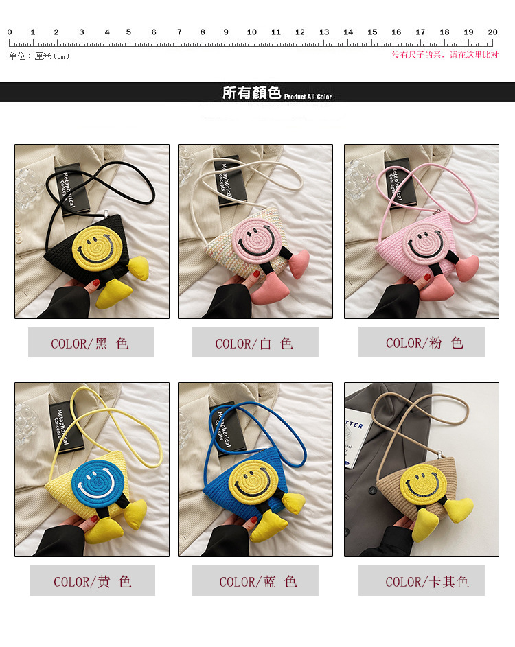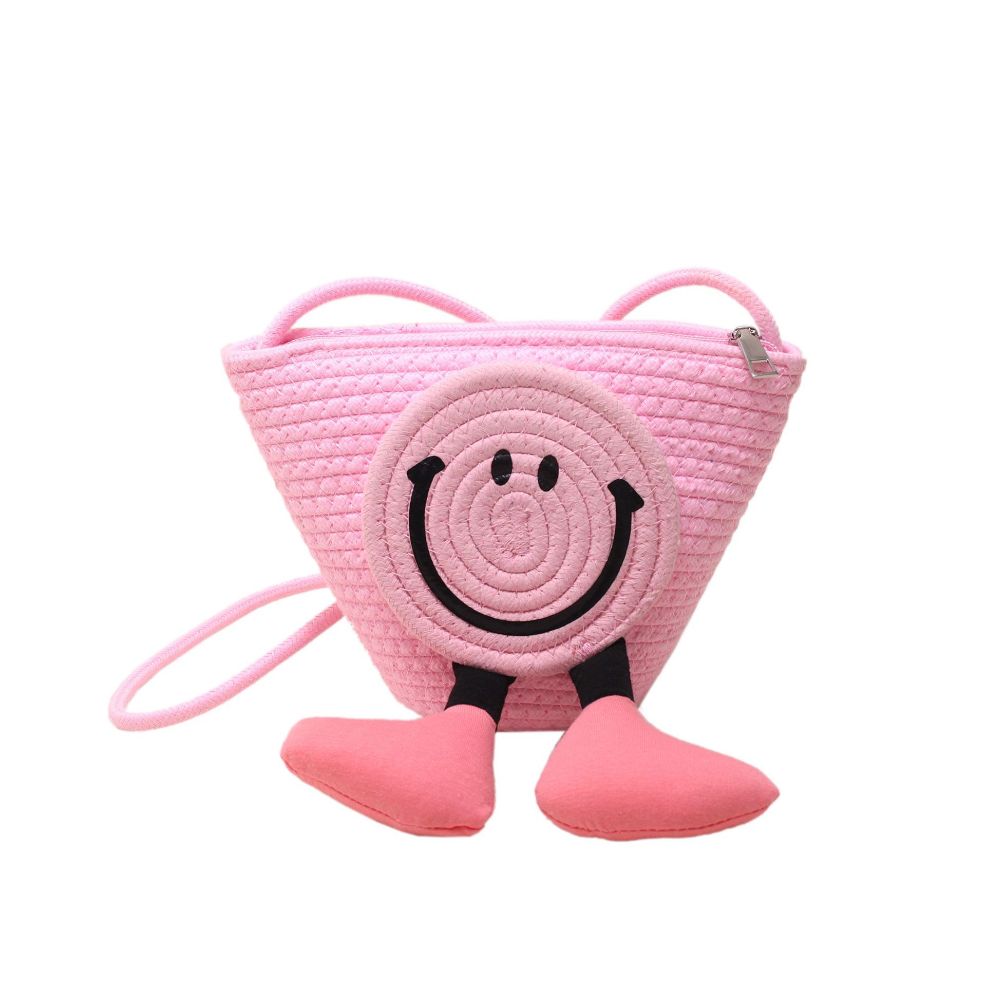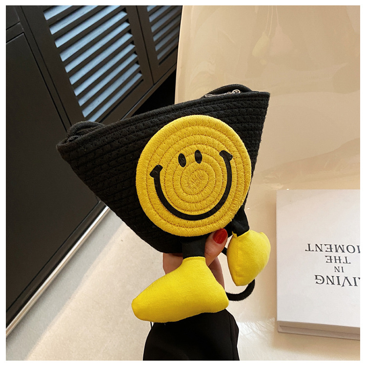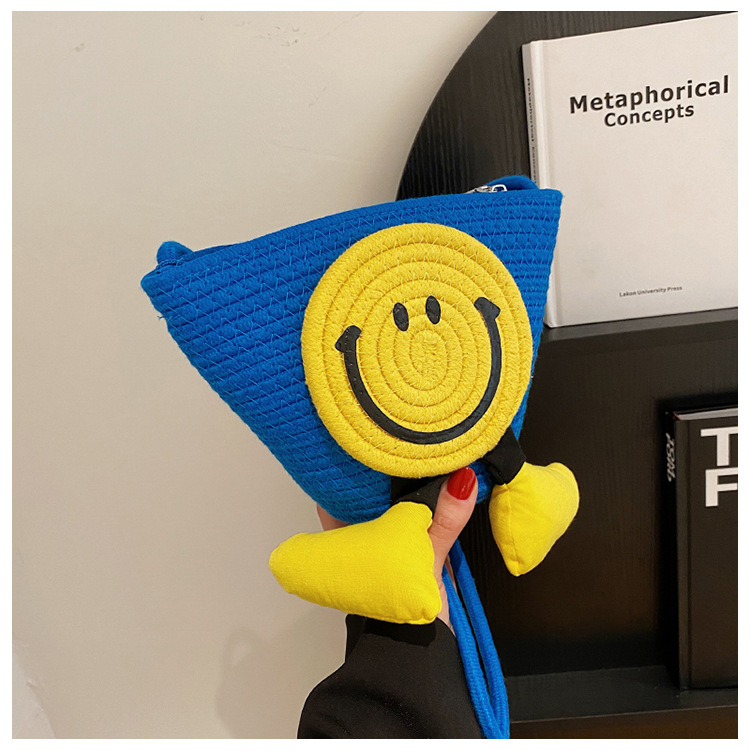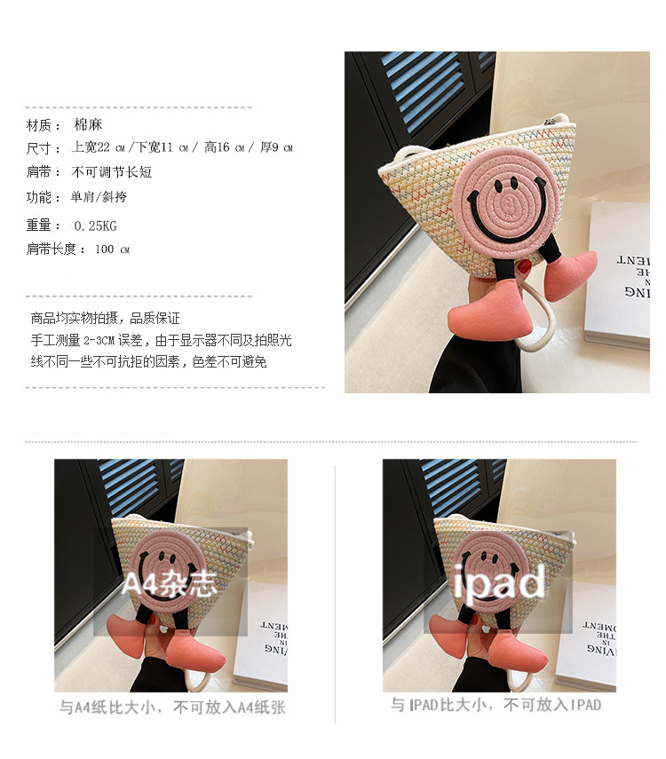 여름 스마일리 밀짚 가방 여자 2024 새 Ins 올매치 비치 짠 버킷 백 트렌디 한 어깨 크로스 바디 백