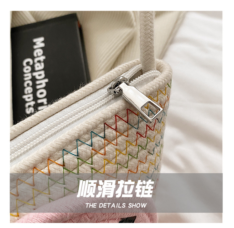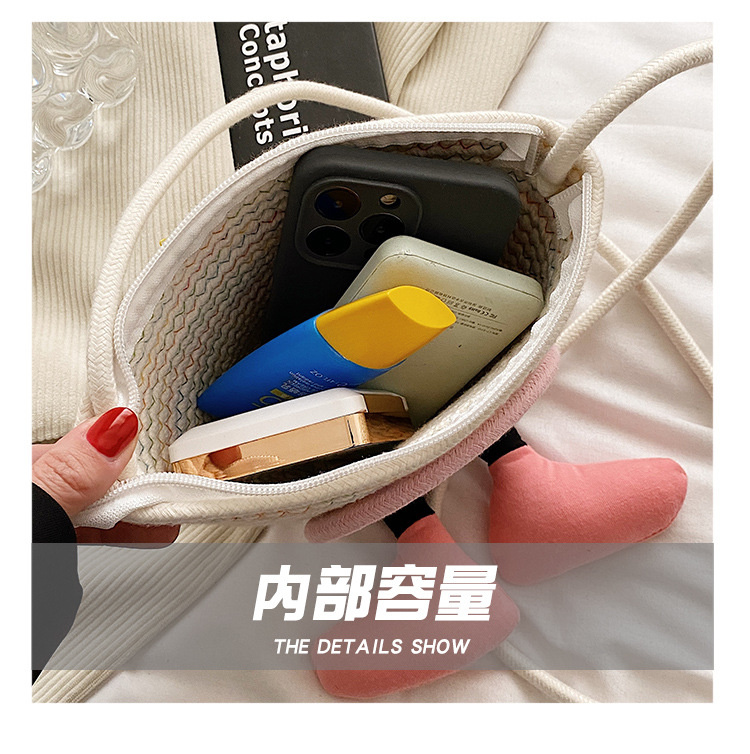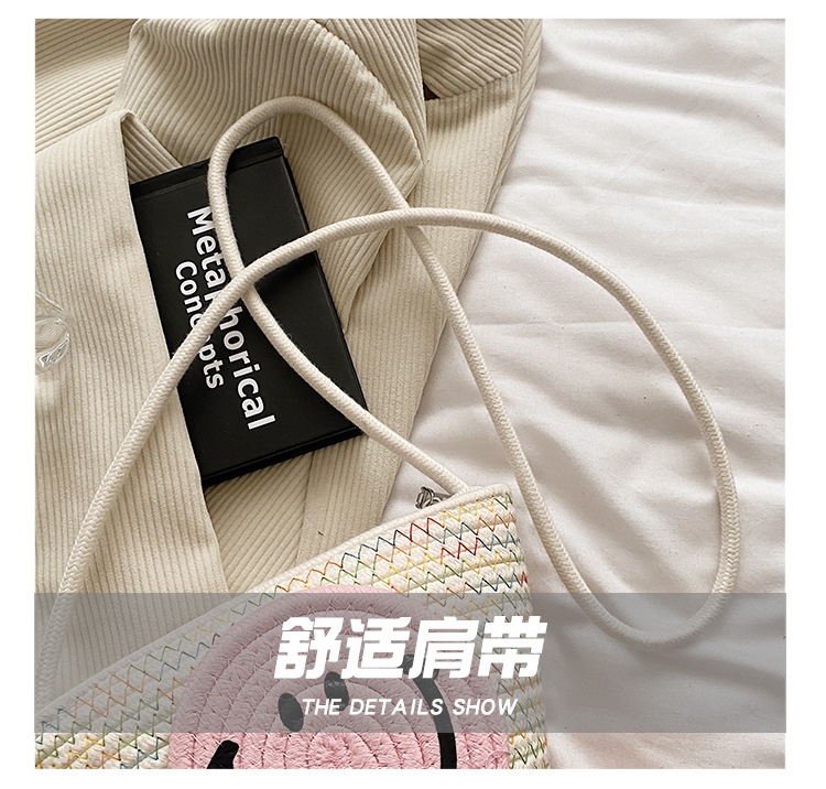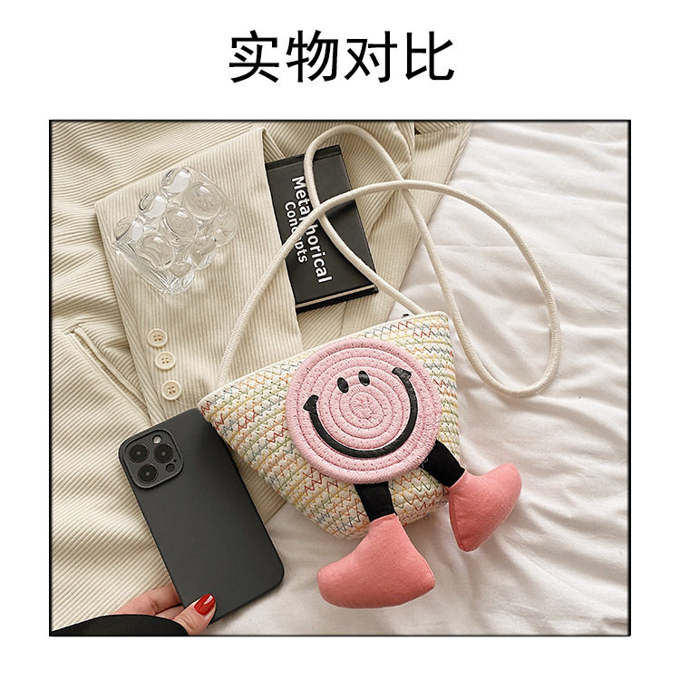 여름 스마일리 밀짚 가방 여자 2024 새 Ins 올매치 비치 짠 버킷 백 트렌디 한 어깨 크로스 바디 백스토어 가기
