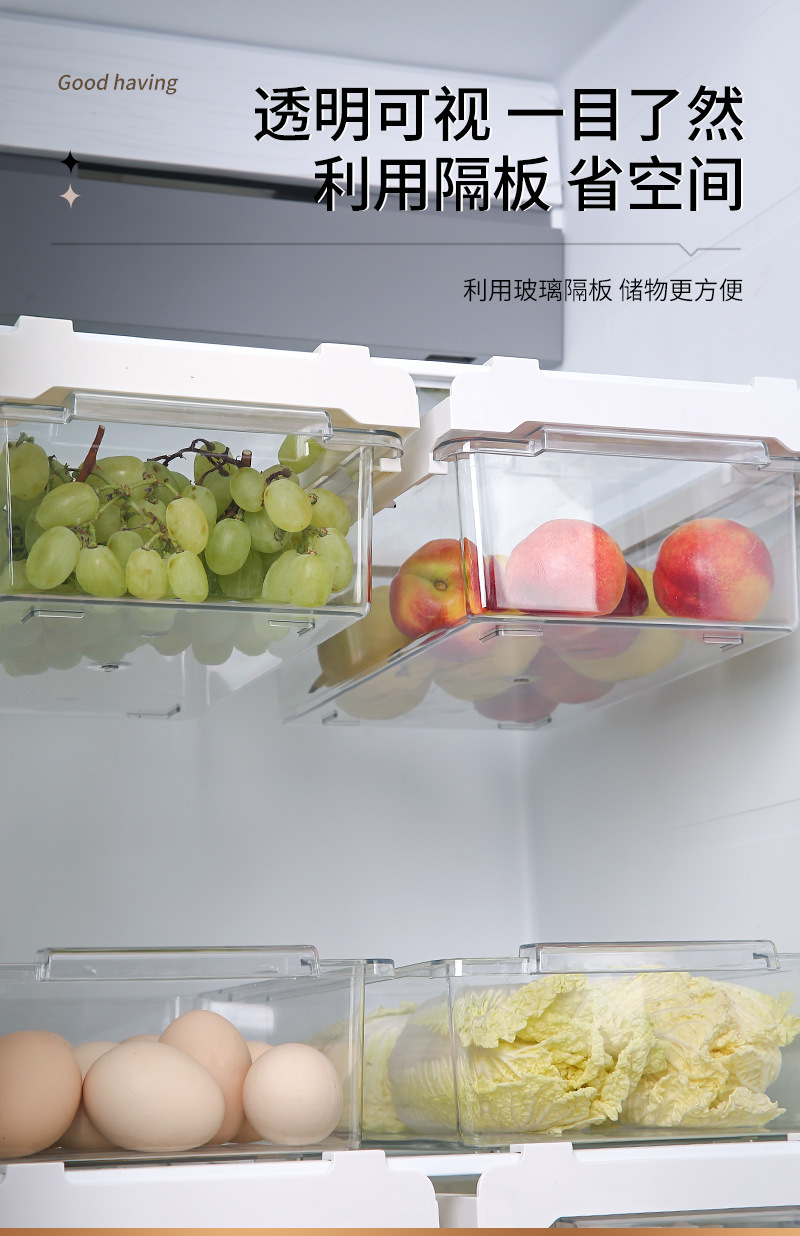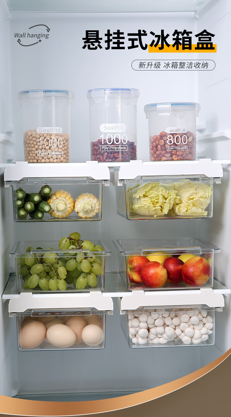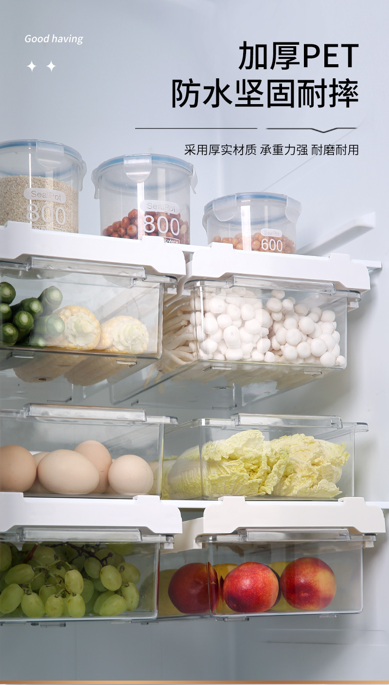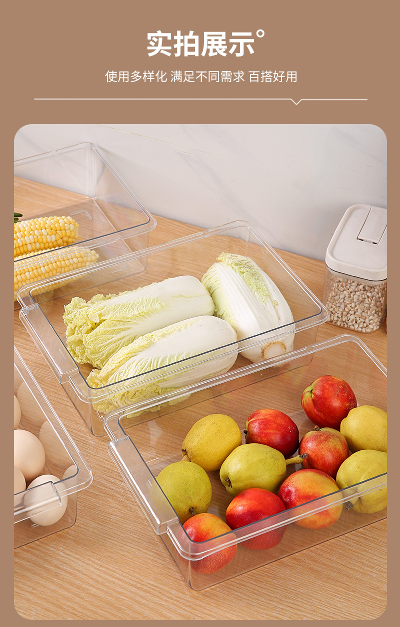 매달린 냉장고 보관 상자 투명한 두꺼운 신선한 보관 상자 큰 손잡이 서랍 유형 계란 보관 상자 과일과 채소