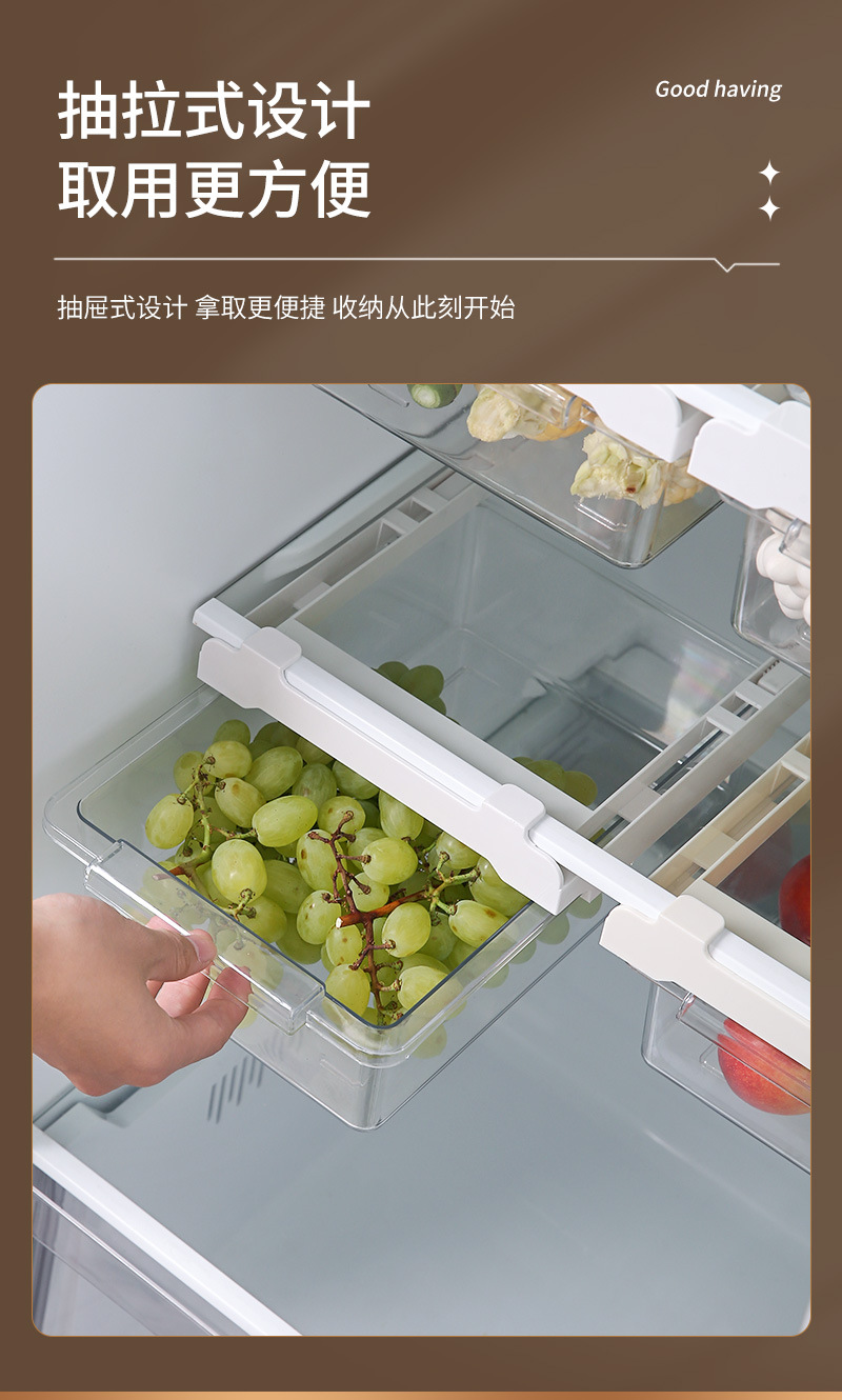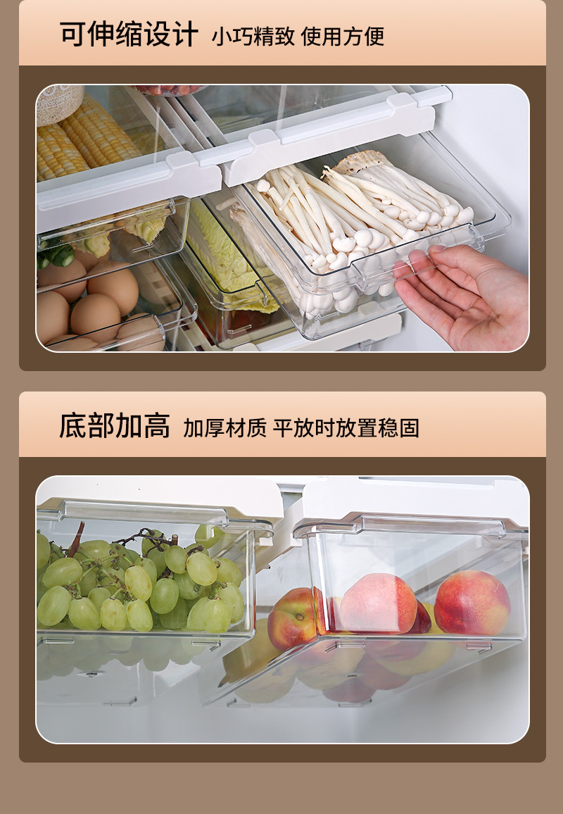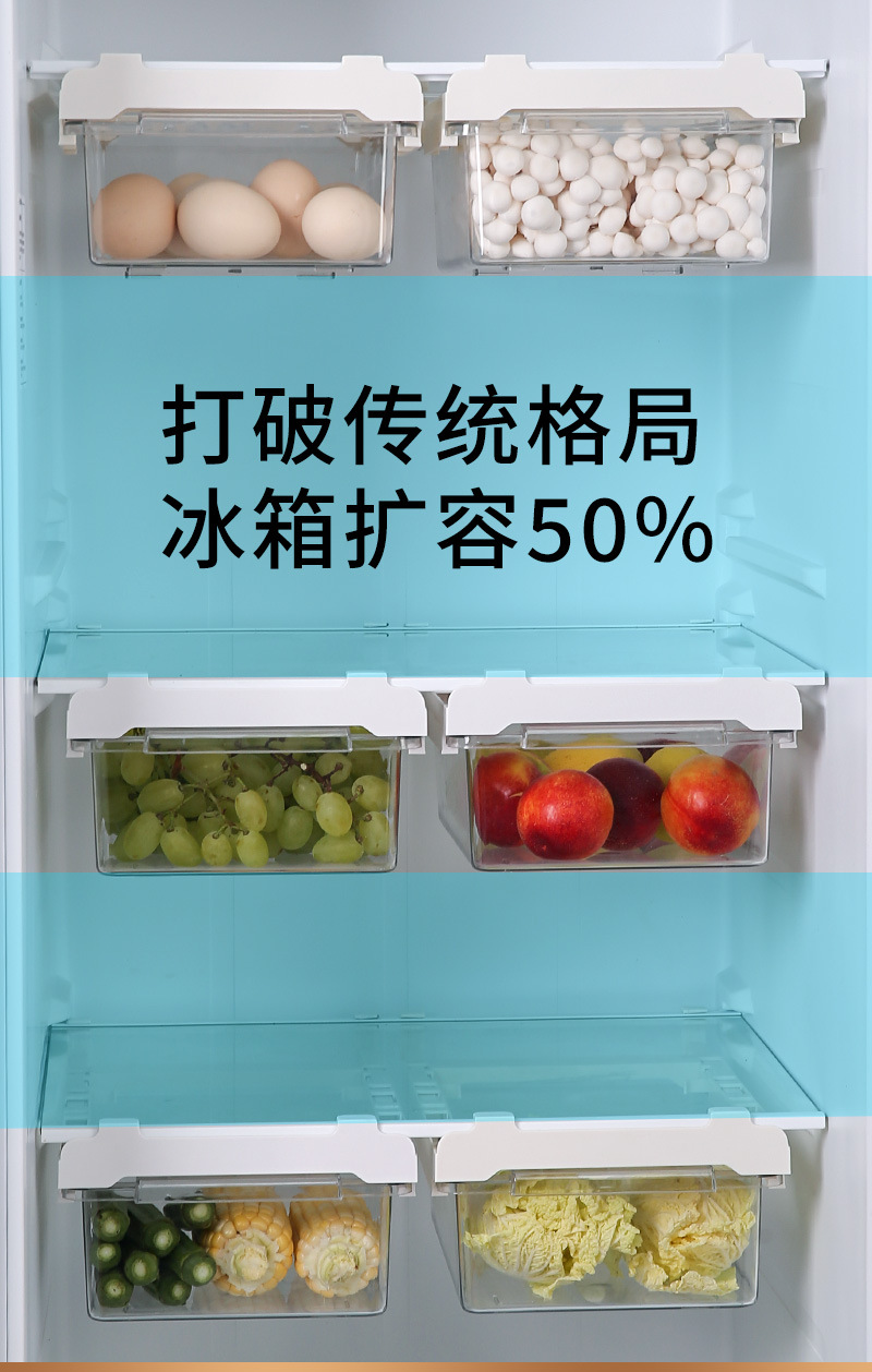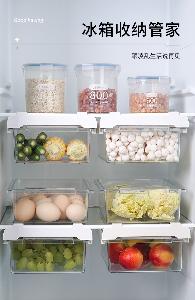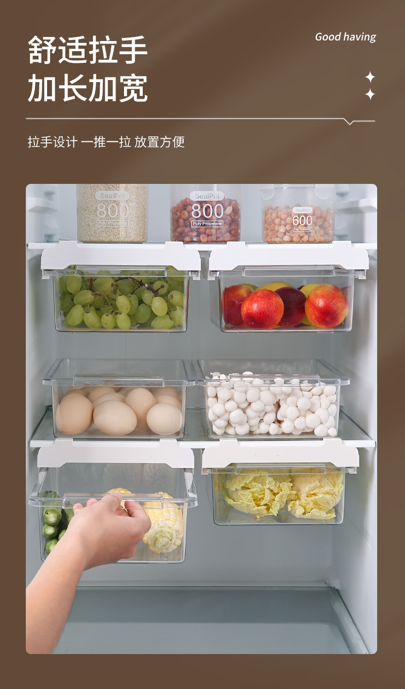 매달린 냉장고 보관 상자 투명한 두꺼운 신선한 보관 상자 큰 손잡이 서랍 유형 계란 보관 상자 과일과 채소