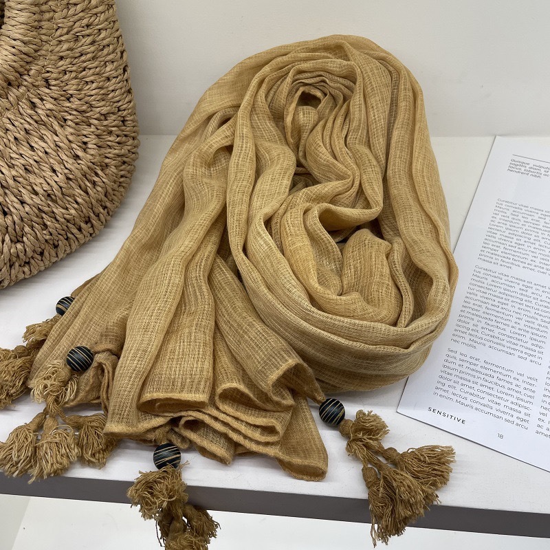 목도리 선 스크린 조커 예술적인면 및 린넨 스카프 도매 여성 목도리를 걸고있는 새로운 고급 민족 린넨 나무 구슬스토어 가기