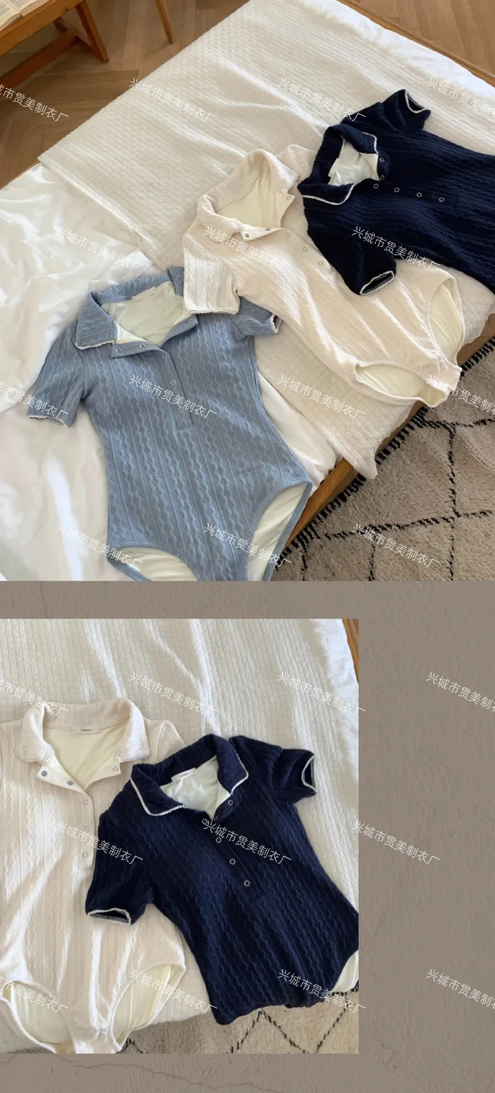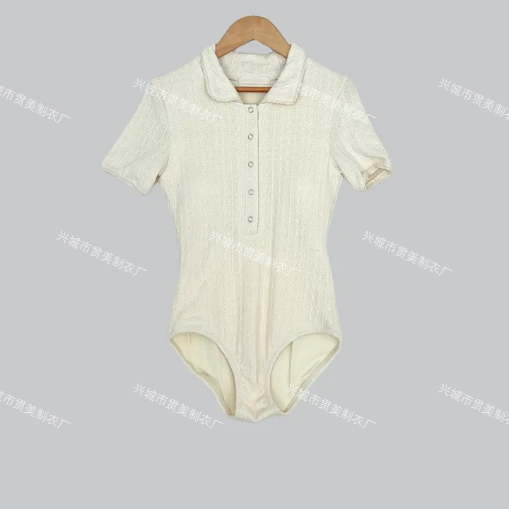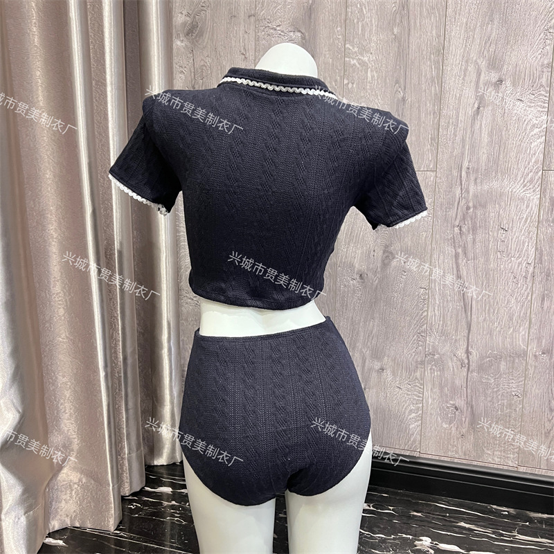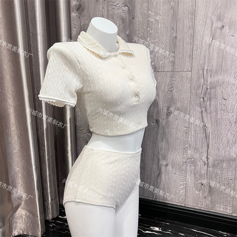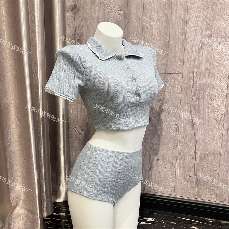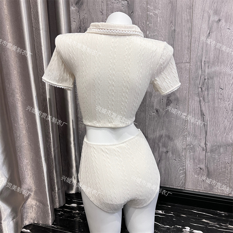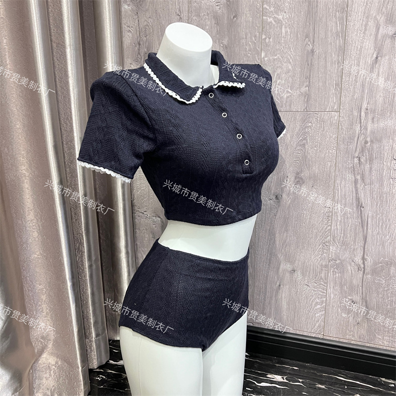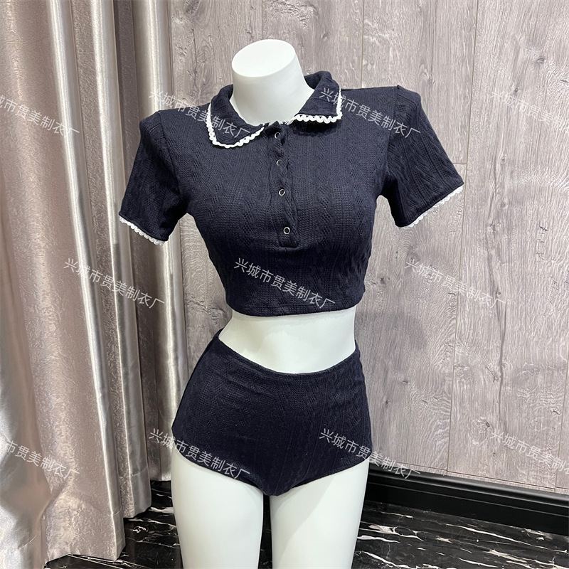 3 색] 새로운 한국 단색 폴로 칼라 하프 소매 우아한 원피스 간단한 수영복 여성 해변 휴가 비키니