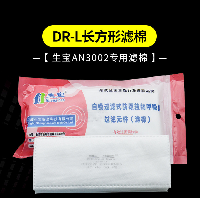 생바오 필터면 DR-L 직사각형 KN95 필터 카트리지 필터지 AN3002 방진 마스크 필터면 10개입