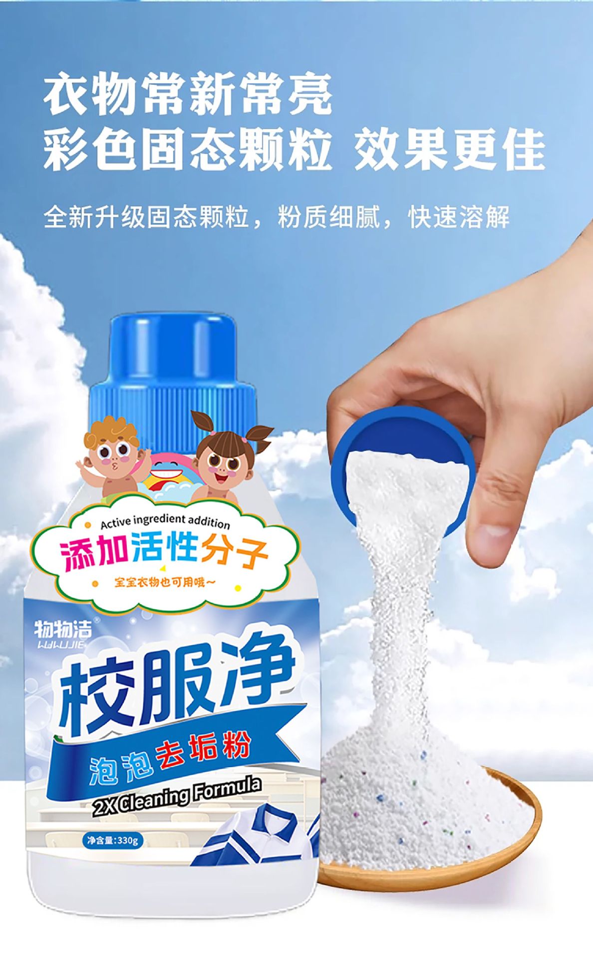 학교 유니폼 그물 거품 세제 분말 330g 그물 붉은 학생 의류 세제 세제 땀 얼룩, 기름 얼룩, 노란 얼룩