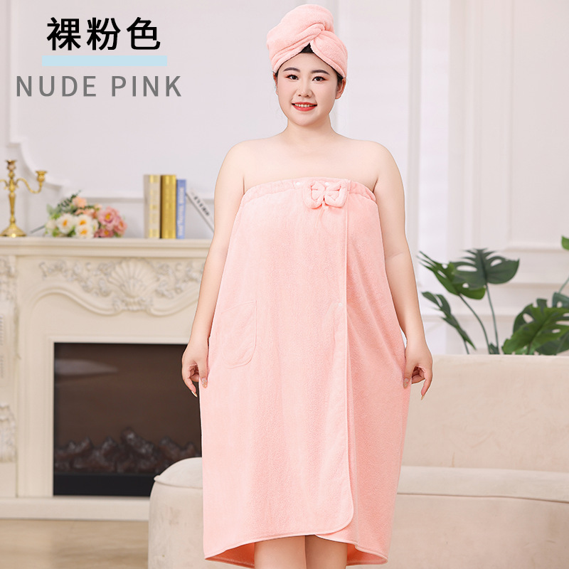 • 일반 플러스 사이즈 목욕 스커트 드라이 헤어 캡 2 피스 (핑크)