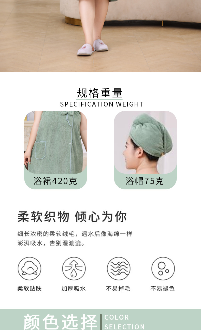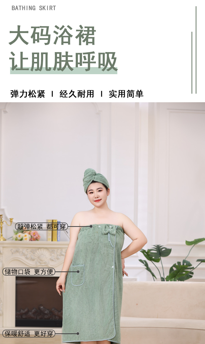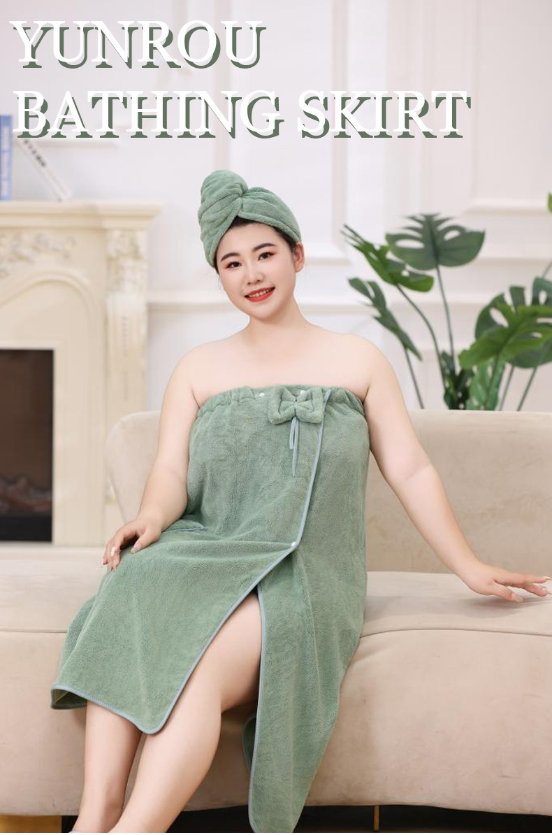 • 일반 플러스 사이즈 목욕 스커트 드라이 헤어 캡 2 피스 세트 (녹색)