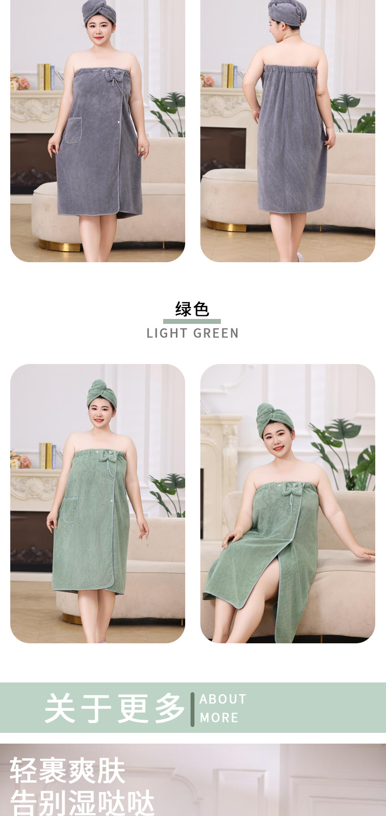 • 플레인 라지 사이즈 목욕 스커트 드라이 헤어캡 투피스 세트 (그레이)