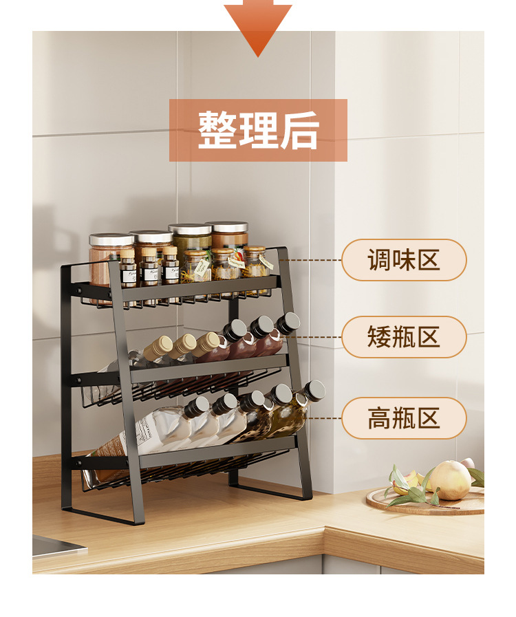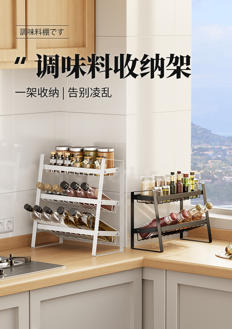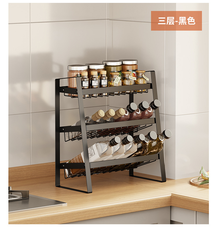 카운터 탑 금속 저장 랙 경사 병 저장 랙 주방 다층 슬라이스 조미료 저장 랙 다기능