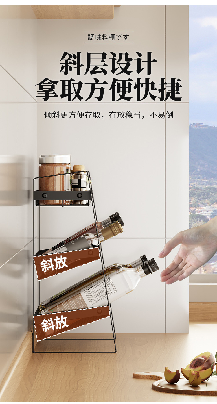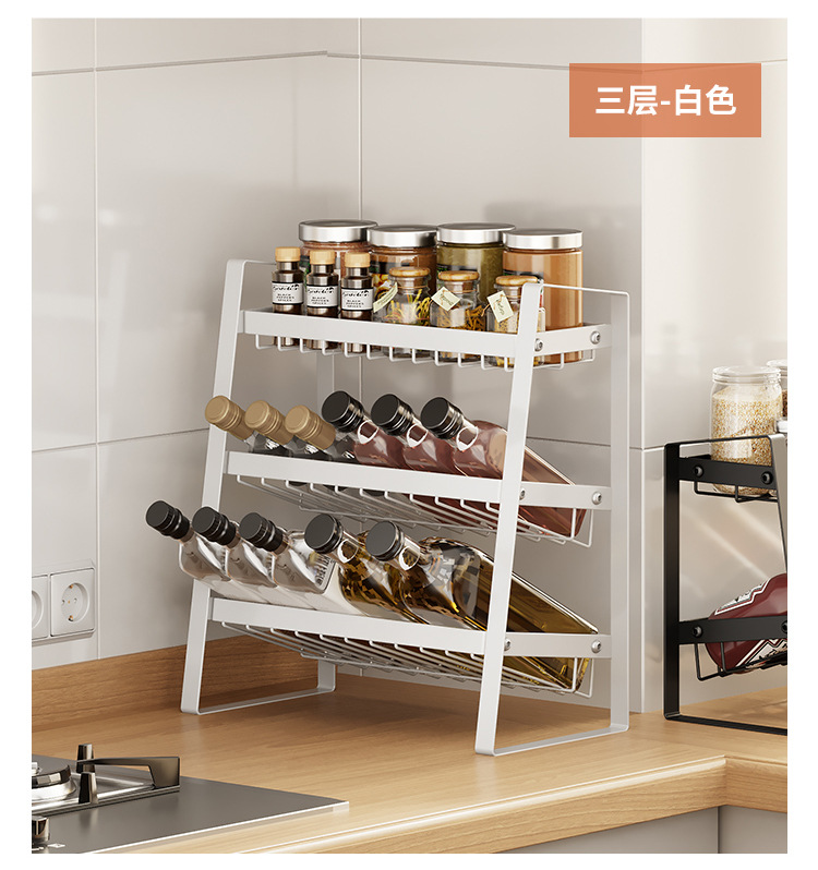 카운터 탑 금속 저장 랙 경사 병 저장 랙 주방 다층 슬라이스 조미료 저장 랙 다기능스토어 가기
