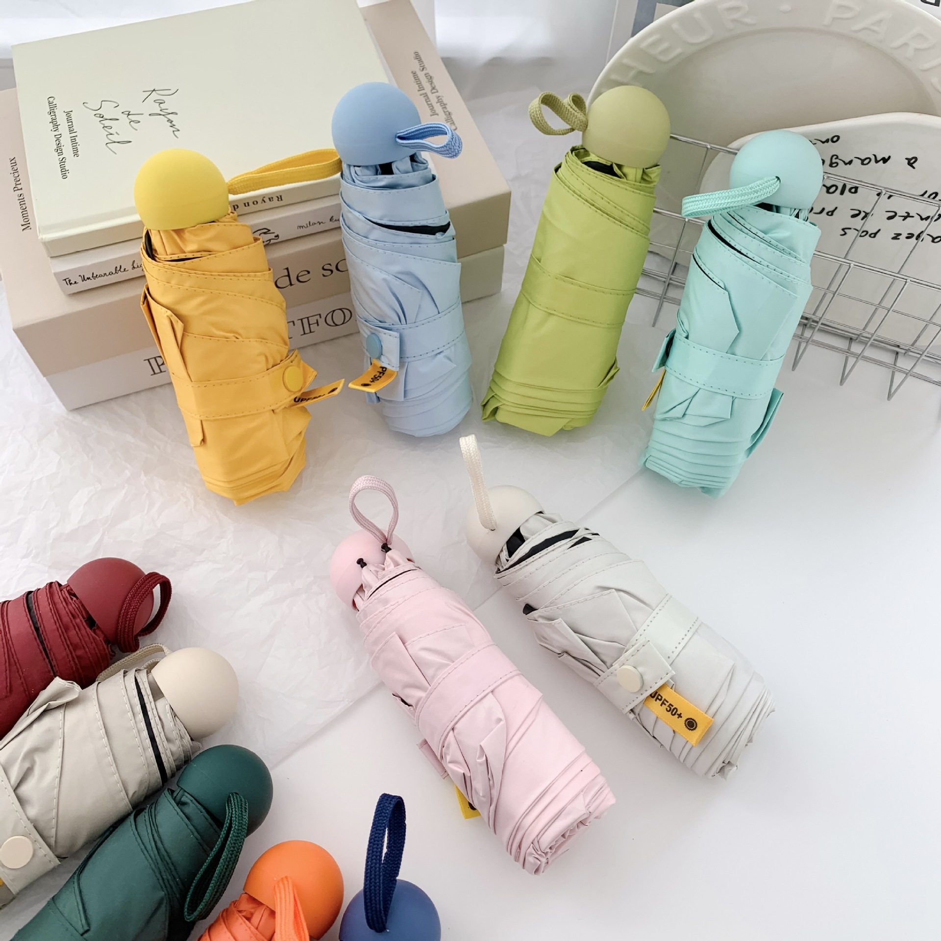 5 배 우산 작은 휴대용 포켓 우산 여성 태양 우산 블랙 고무 태양 보호 UV 보호 접히는 미니 햇살 우산