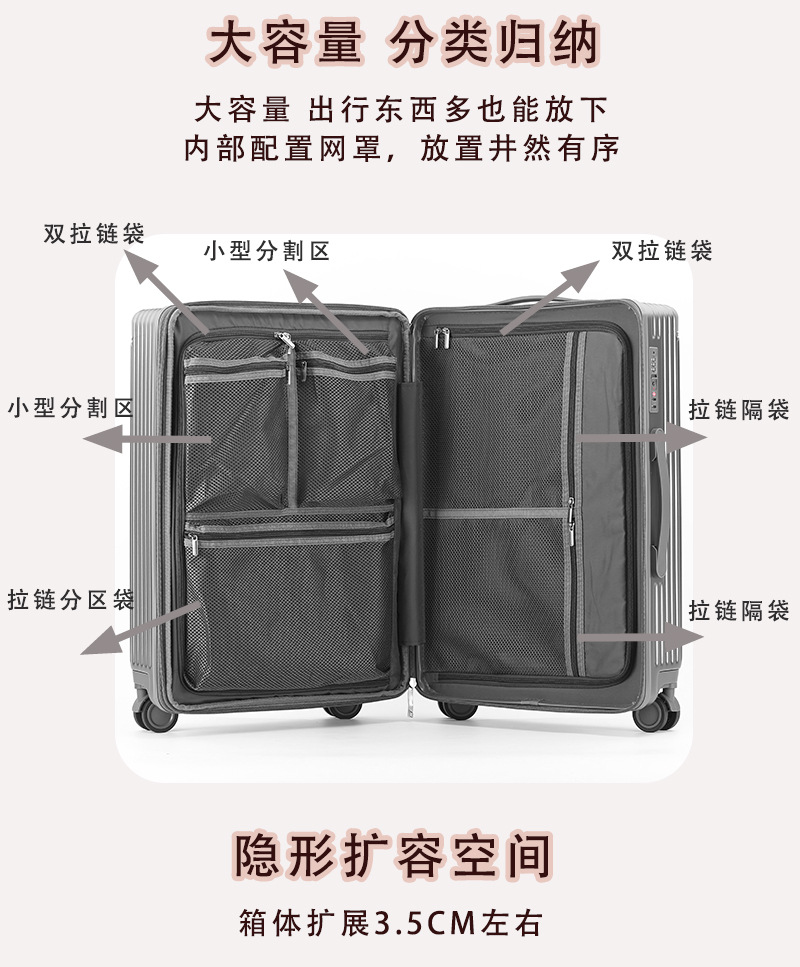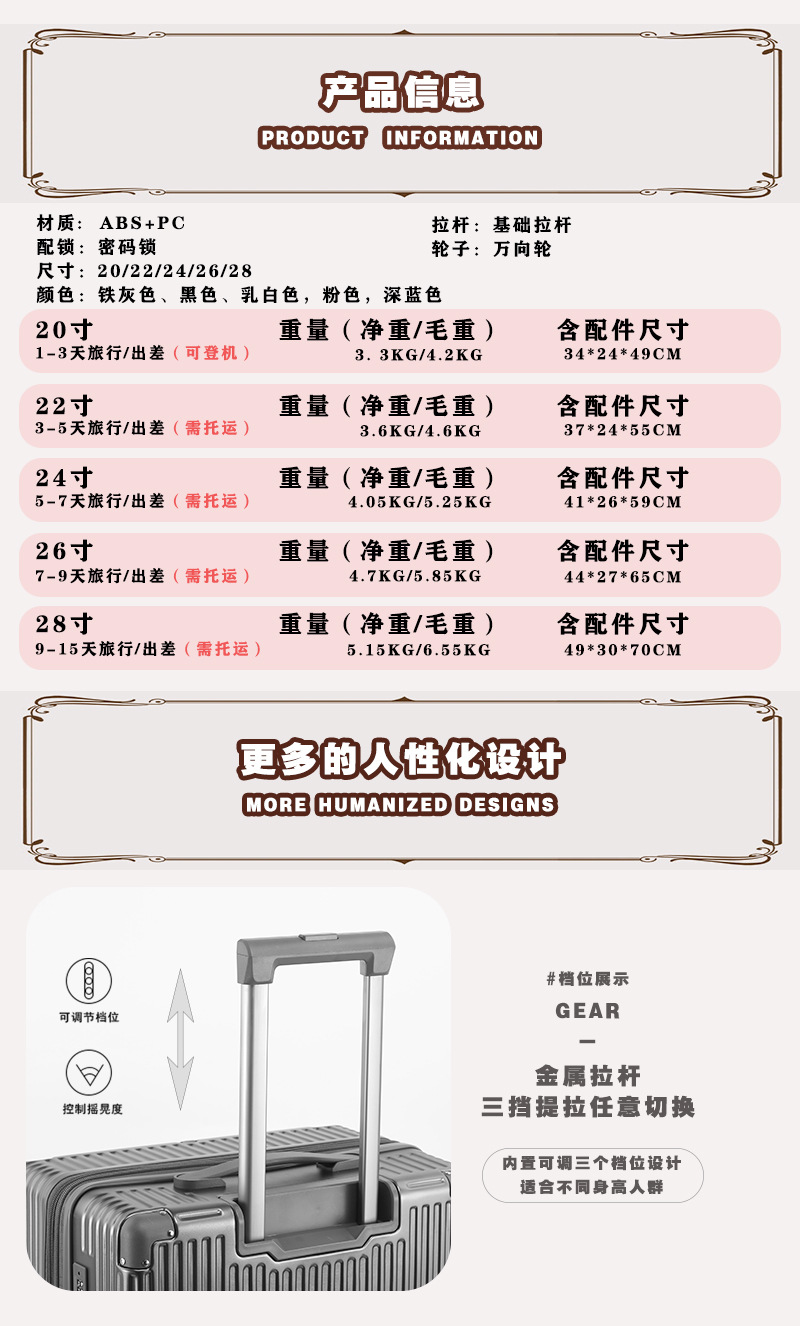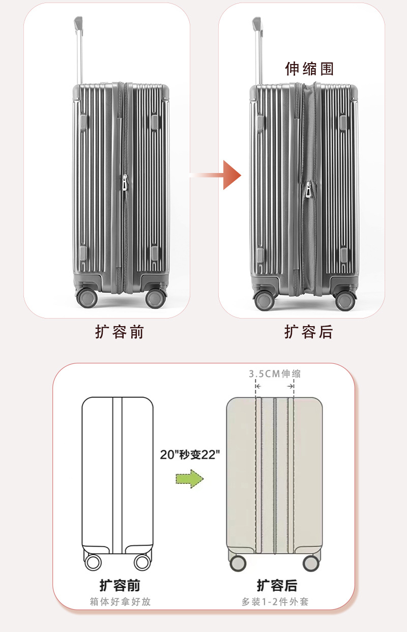 PC 티롤리 캐리어, 대용량 확장형 여행가방, 세관잠금장치가 있는 비밀번호 수하물가방, 내구성이 뛰어난 20인치 기내용 캐리어, 대용량스토어 가기