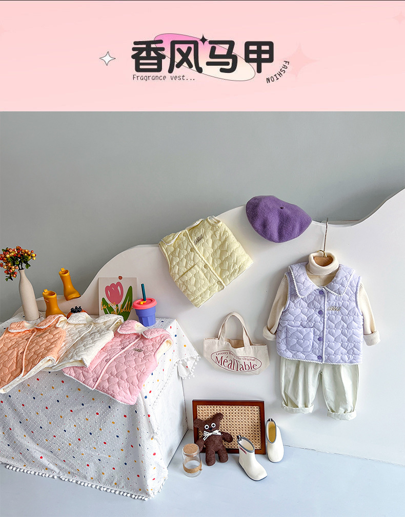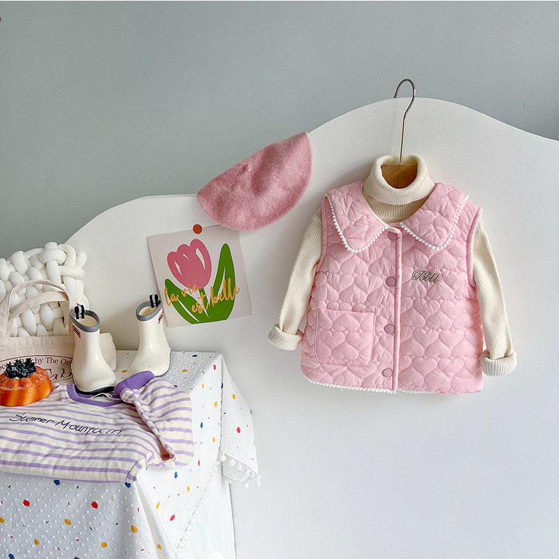 새로운 봄과 가을 어린이 조끼 소녀 면화 조끼 작은 공주 기모 외국 스타일의 양복 조끼 공장 도매