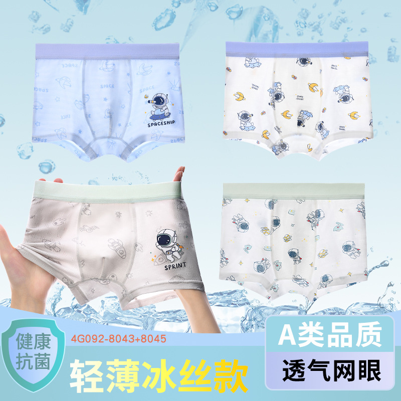 아동용 남아 속옷, 아이스 실크 A급 모달 여름 메쉬, 유아 및 중대형 어린이용 사각팬티, 외출복으로도 착용 가능스토어 가기