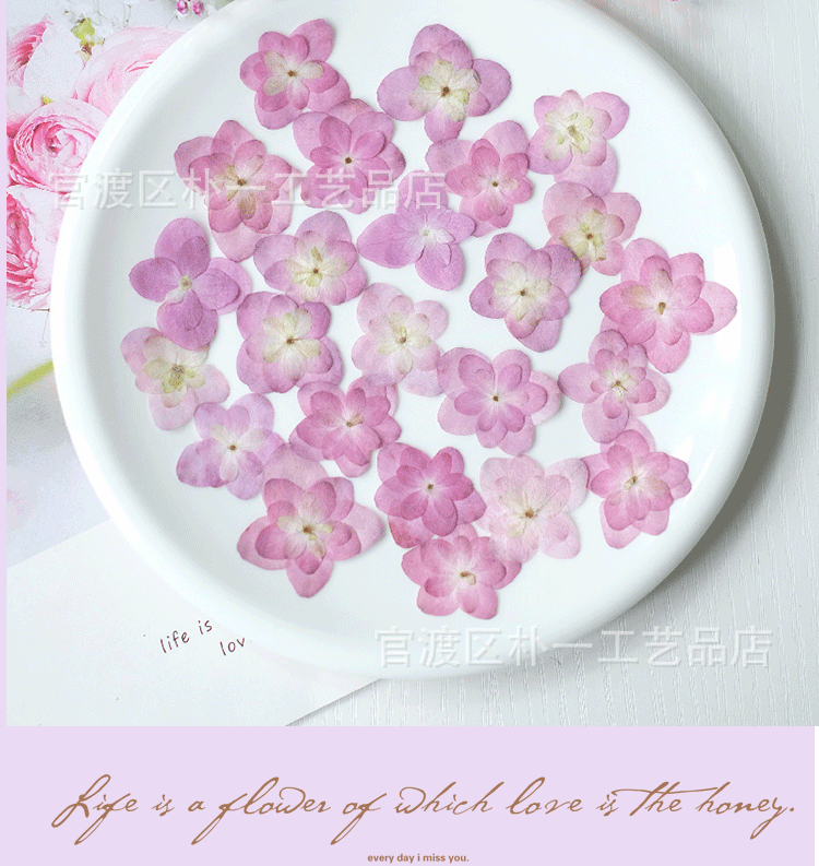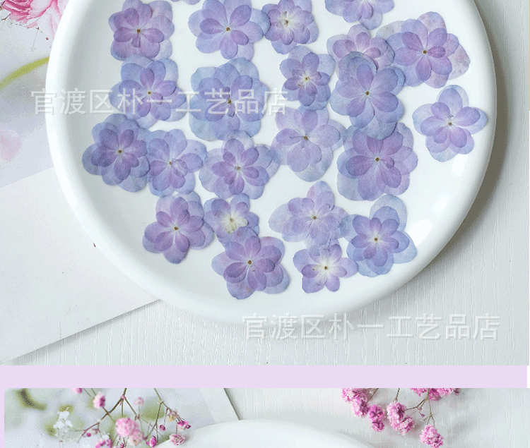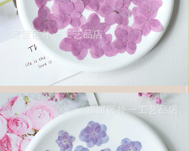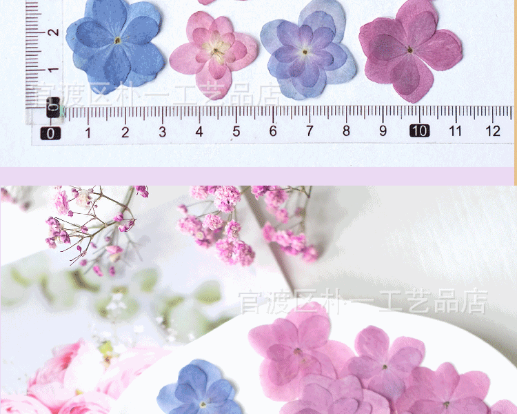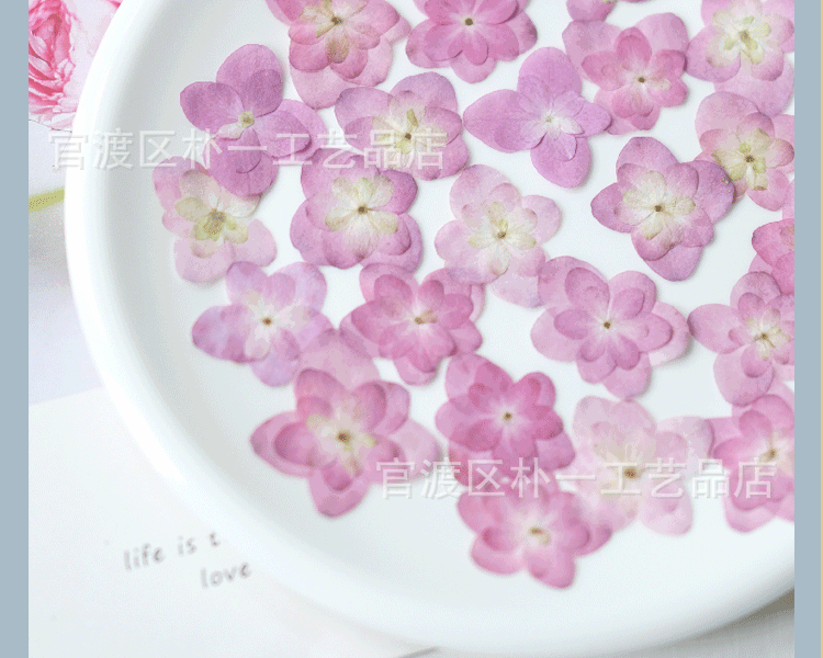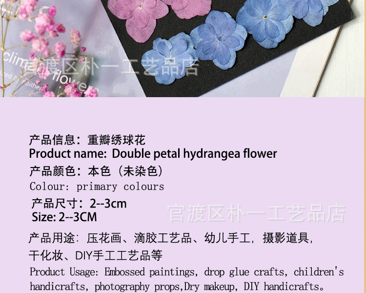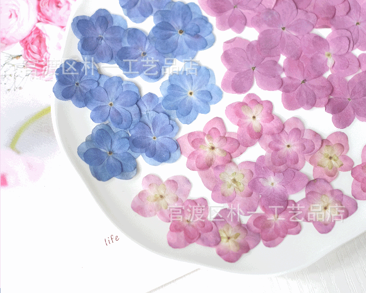자연 기본 색상 멀티 꽃잎 더블 수국 말린 꽃 드롭 접착제 드롭 휴대 전화 케이스 DIY 리얼 플라워 코스터 양각 사진 프레임스토어 가기