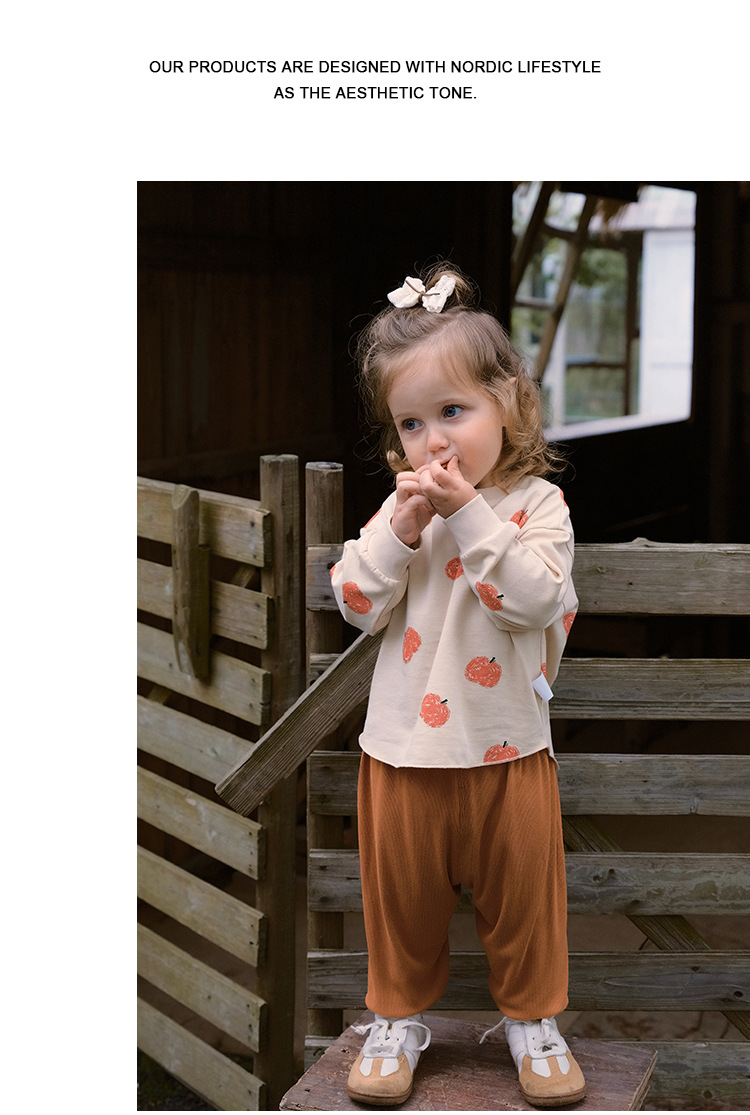 Muaqiaqia 북유럽 스타일 아기 티셔츠 소년의 긴 소매 최고 애플 인쇄 소녀의 봄과 가을 4YCT049스토어 가기