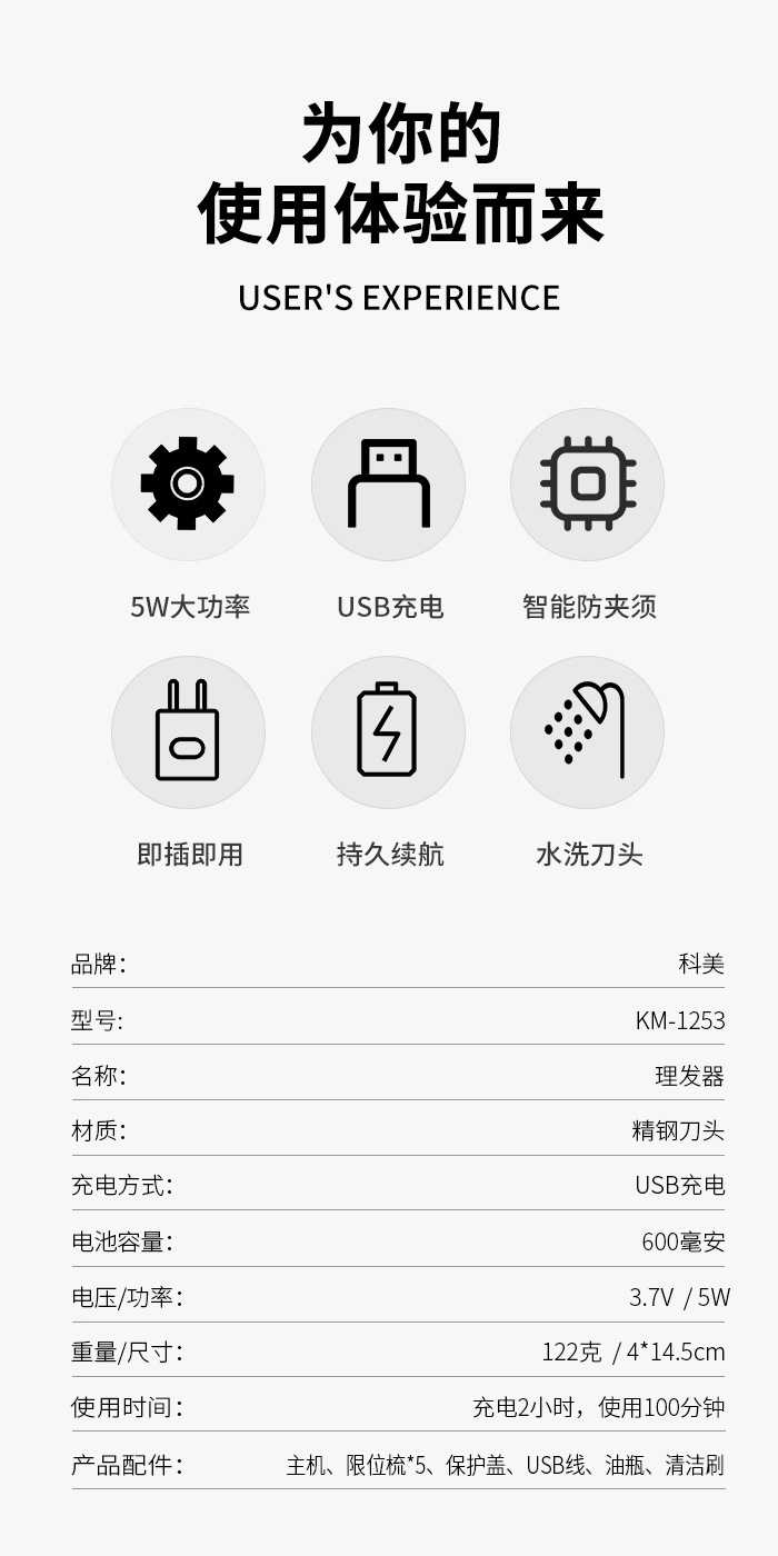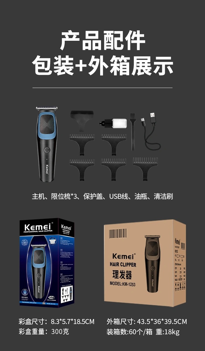 Kemei 전기 클리퍼 KM-1253 슈퍼 장수 헤어 살롱 가정용 면도 헤드 전기 클리퍼 USB 오일 헤드 조각 헤어 클리퍼스토어 가기