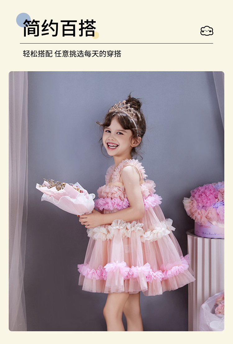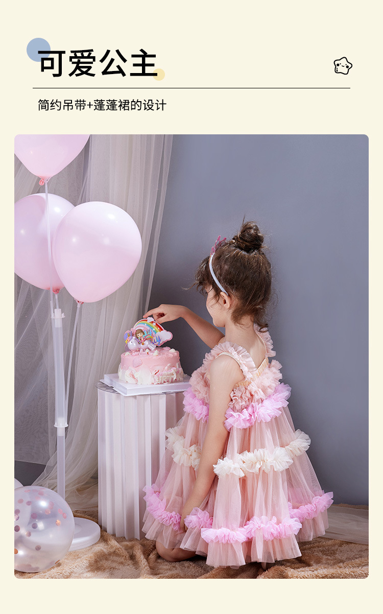 소녀 원피스 원피스 1 년 된 생일 공주 원피스 레인보우 파우더 슬링 원피스 하이 엔드 여성의 보물 웨스턴 레이스 원피스스토어 가기