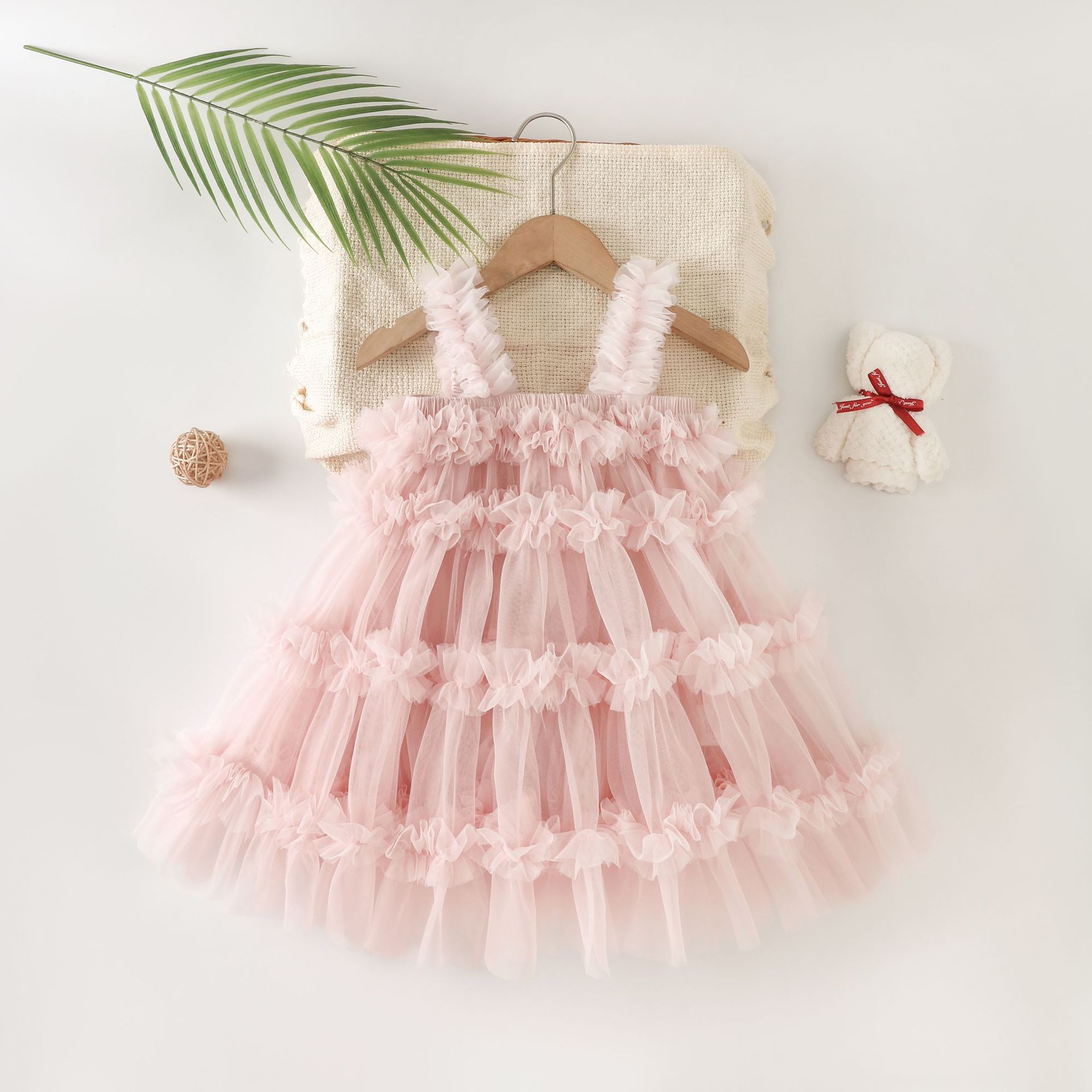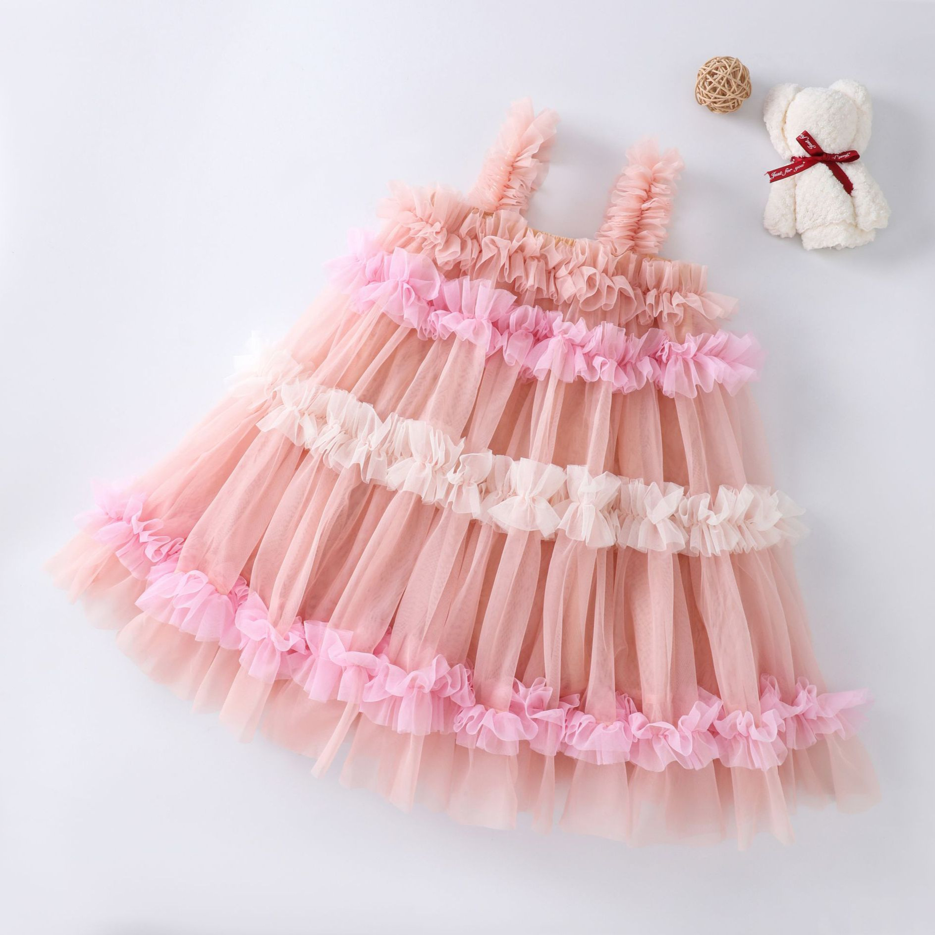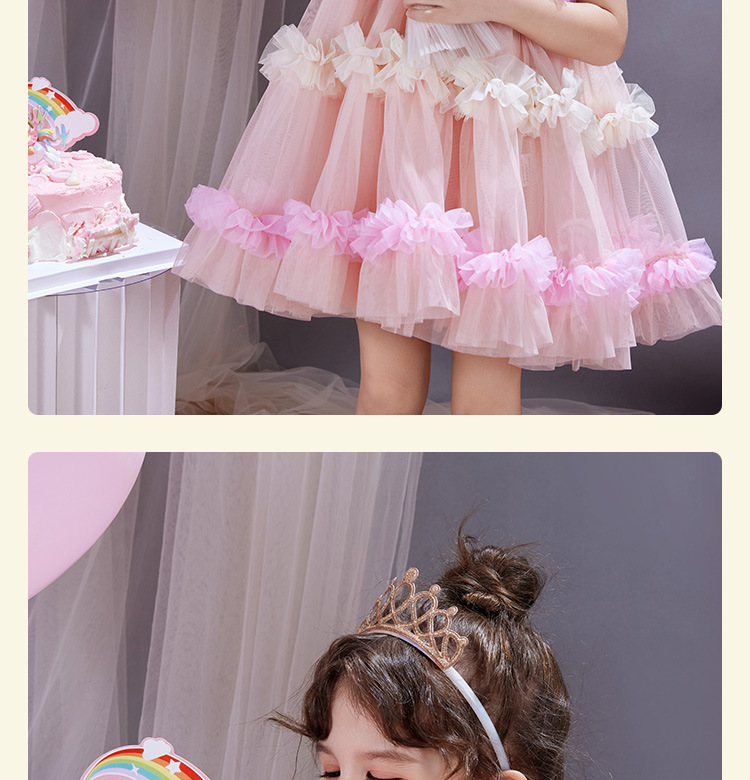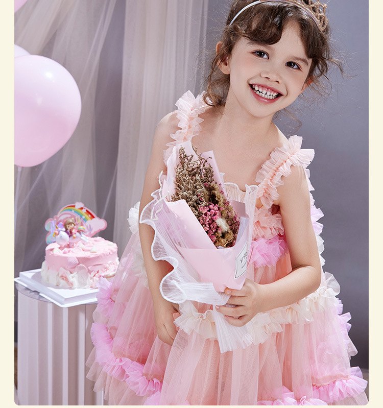 소녀 원피스 원피스 1 년 된 생일 공주 원피스 레인보우 파우더 슬링 원피스 하이 엔드 여성의 보물 웨스턴 레이스 원피스