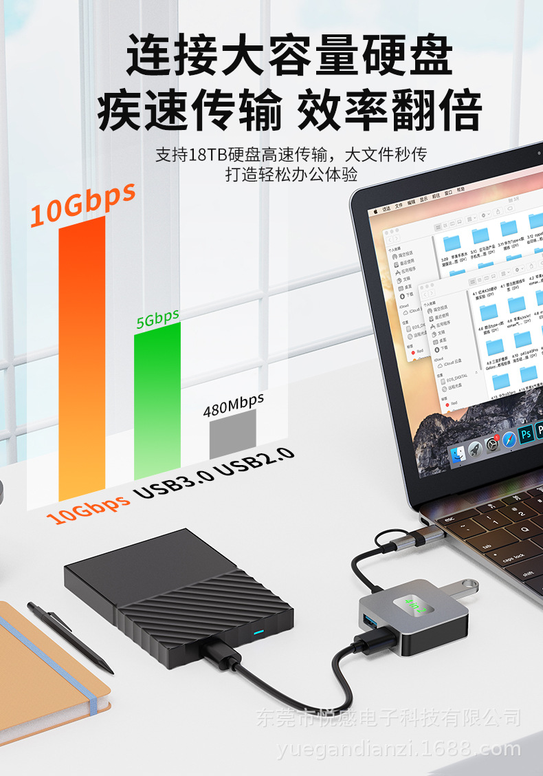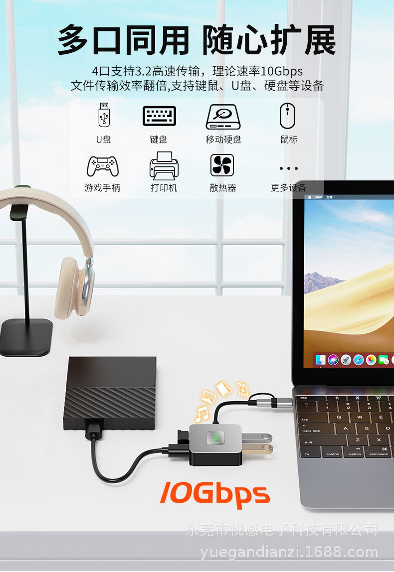 국경 간 Type-c hub3.2 10gbps 노트북 Gen2 허브 일대일 스플리터스토어 가기