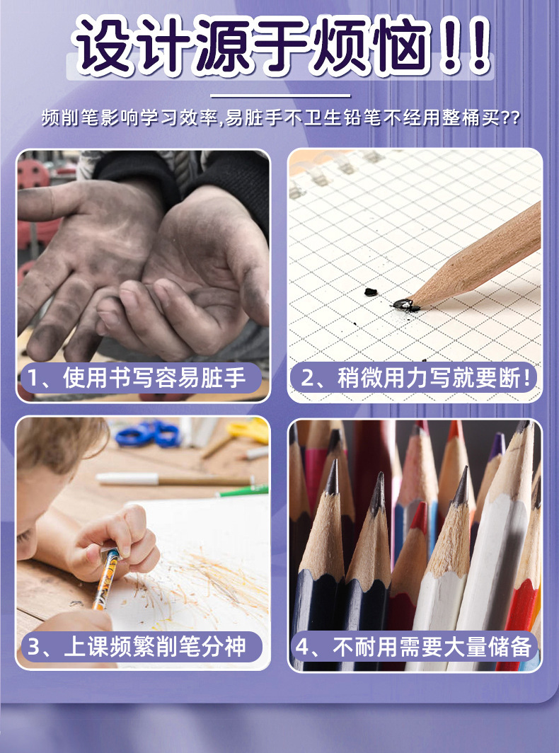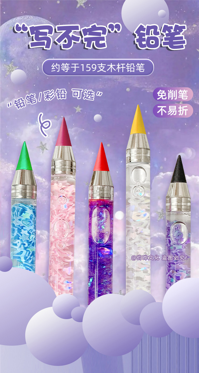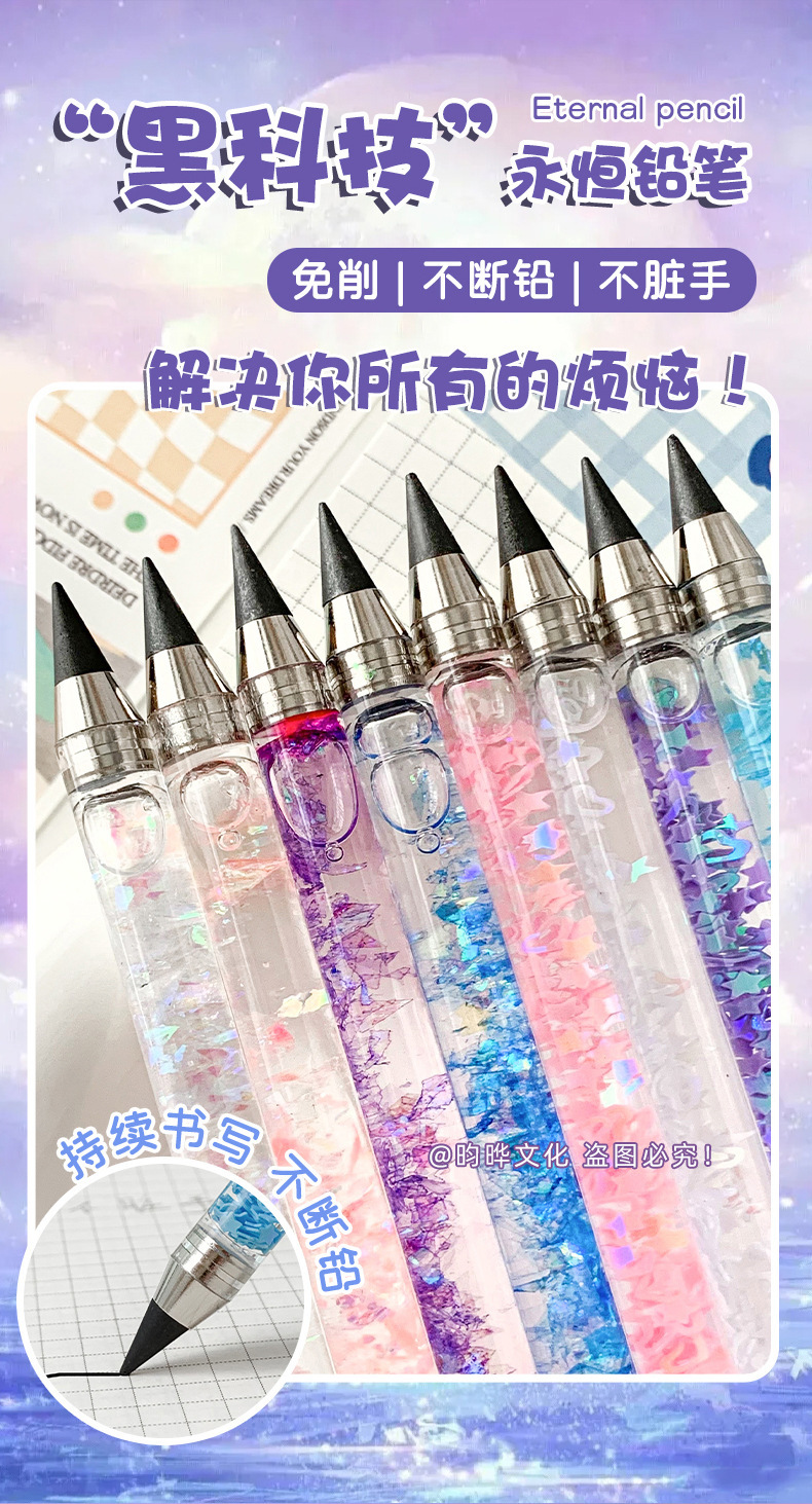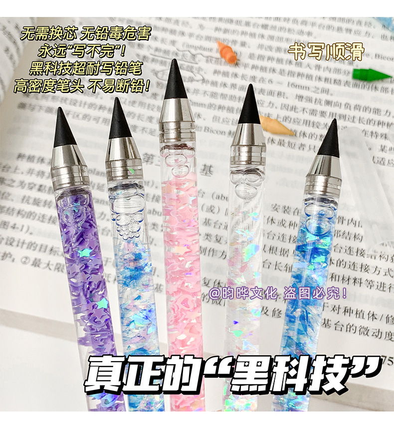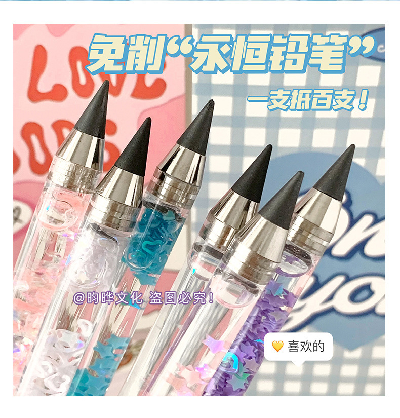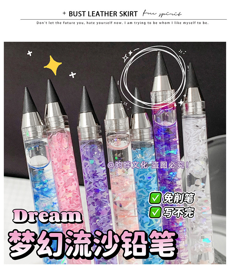 인스 스타일 귀여운 흐르는 모래 연필, 깎을 필요 없는 영구 연필, 컬러 블랙 테크놀로지 스케치 펜, 드로잉 펜, 흐르는 모래 스타일
