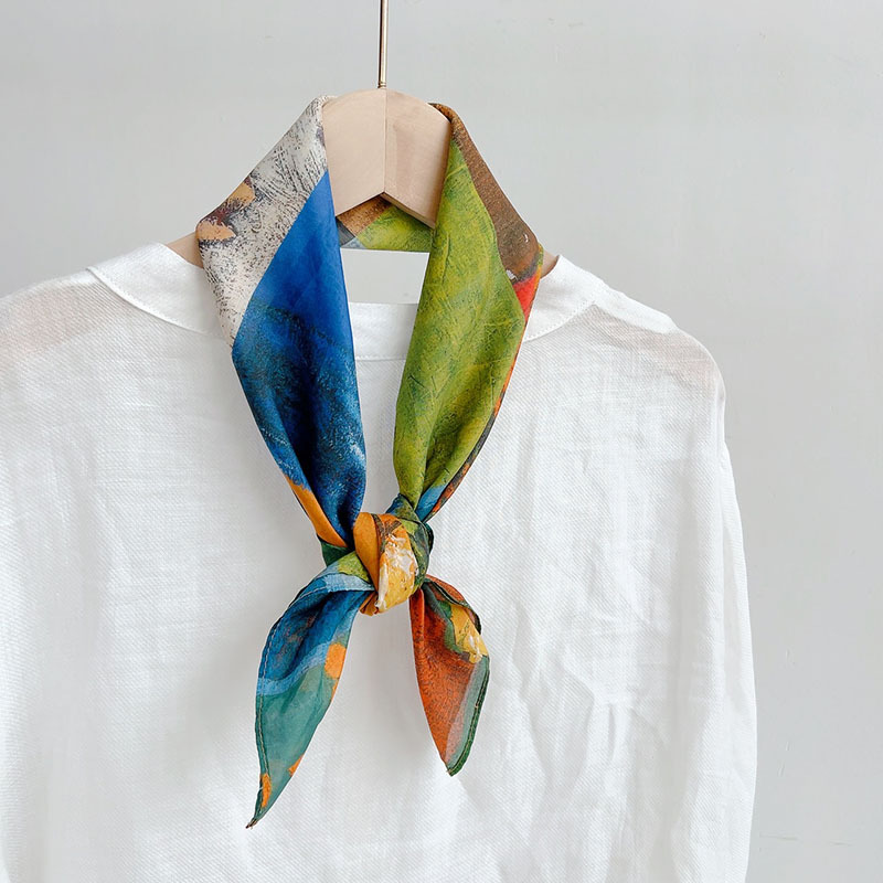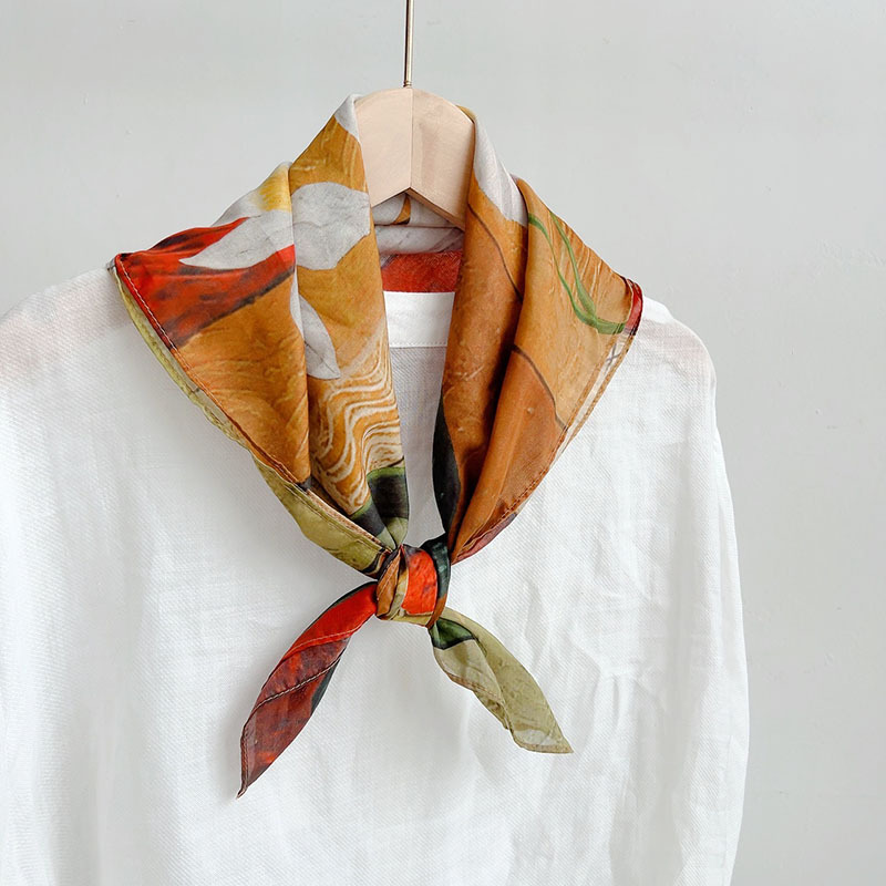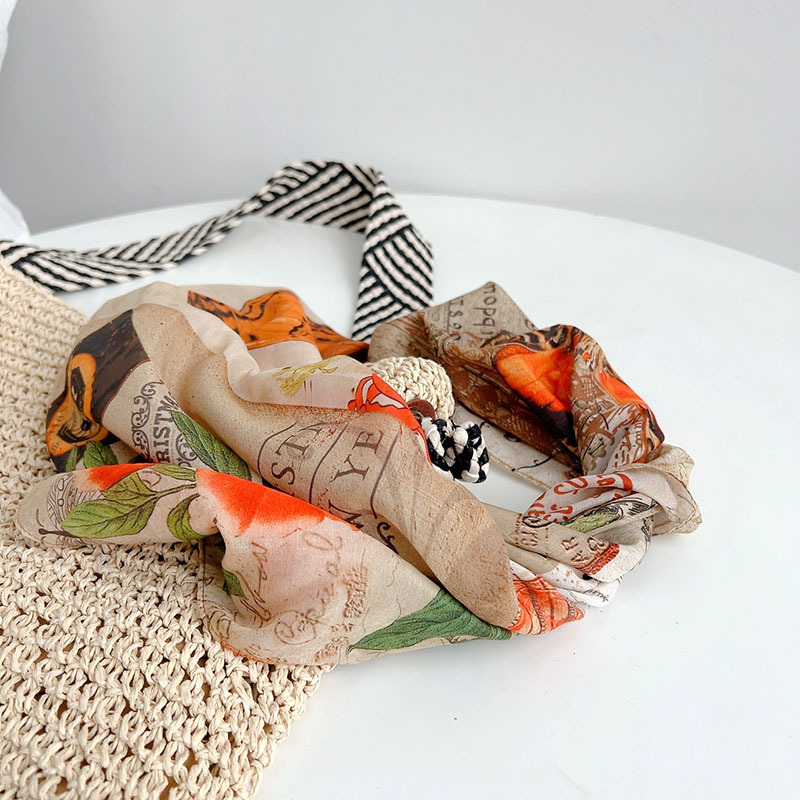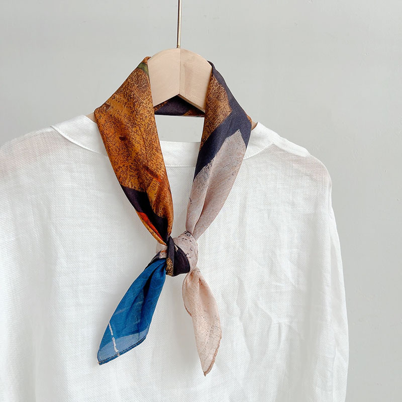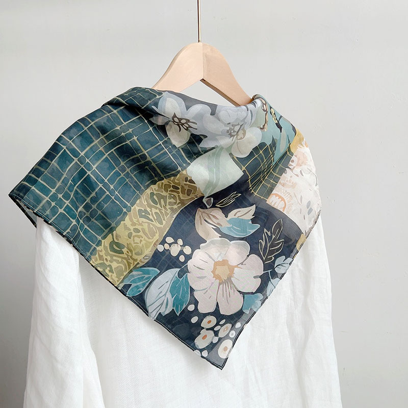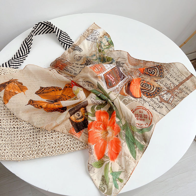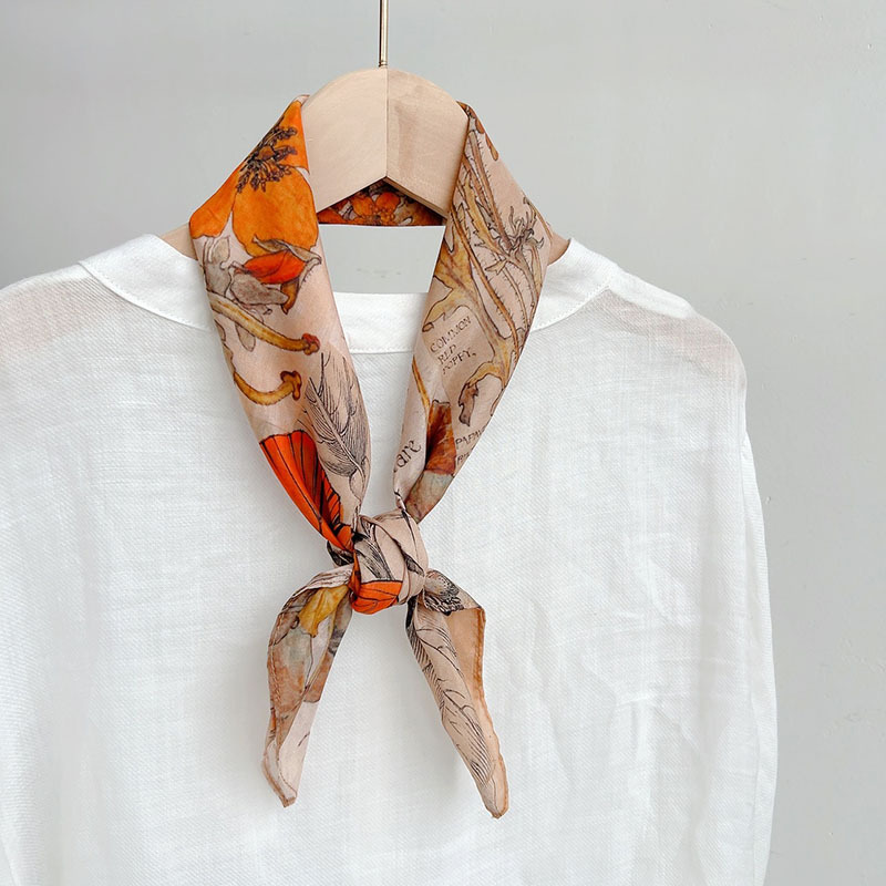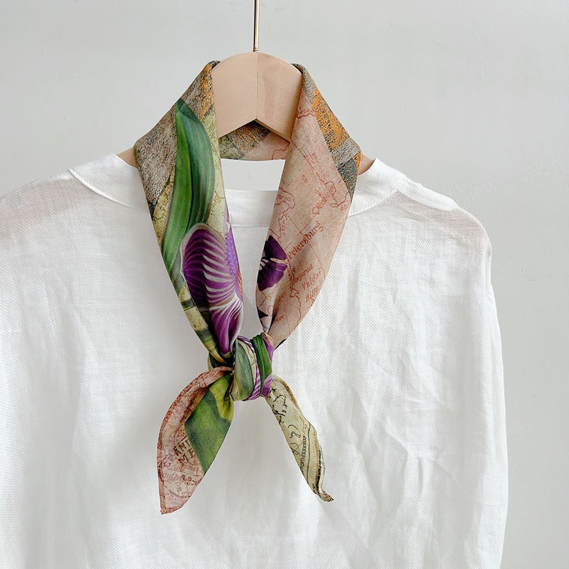 봄과 가을 새로운 인쇄 된 뽕나무 실크면 실크 작은 광장 스카프 여름 목 보호 작은 실크 스카프 여성을위한 우아한 올 매치 작은 스카프