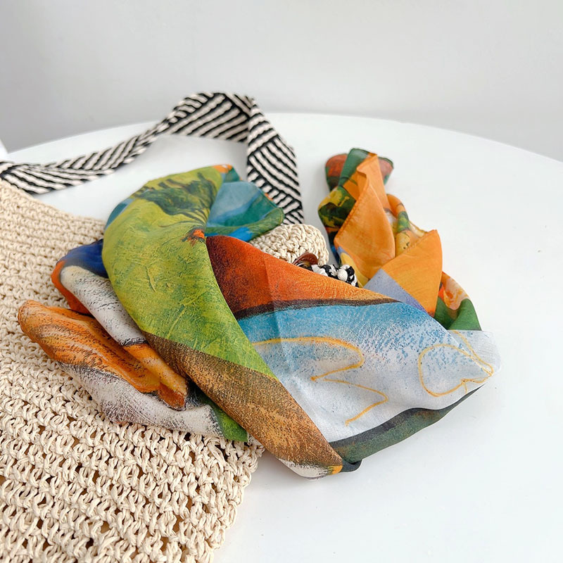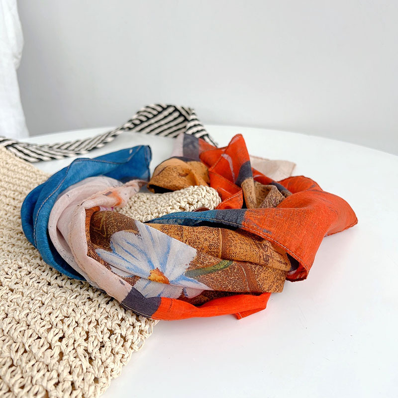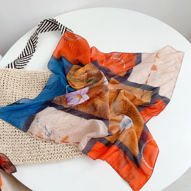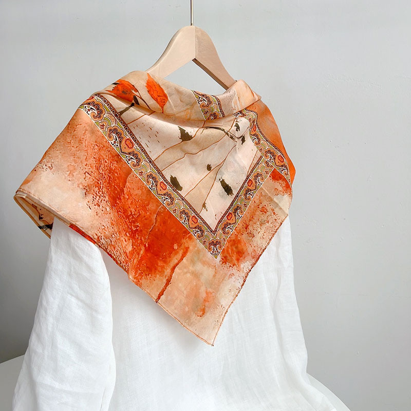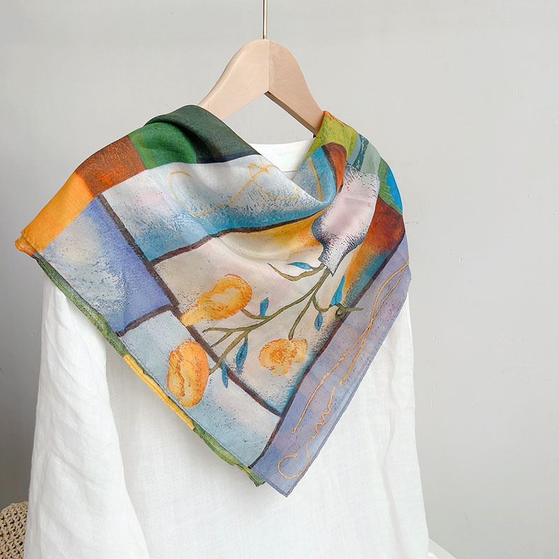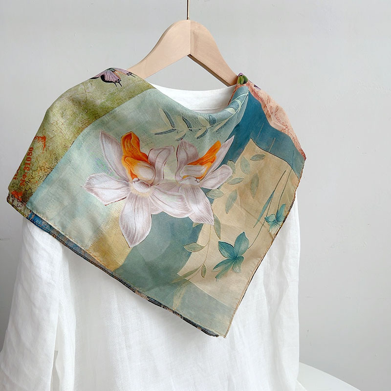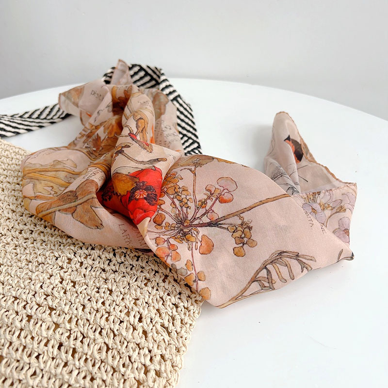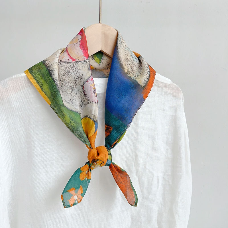 봄과 가을 새로운 인쇄 된 뽕나무 실크면 실크 작은 광장 스카프 여름 목 보호 작은 실크 스카프 여성을위한 우아한 올 매치 작은 스카프