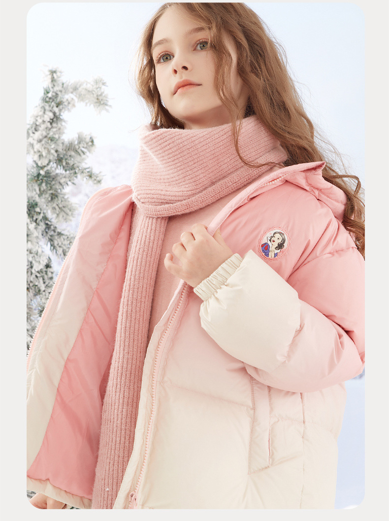 소녀 다운 재킷 코트 2024 어린이 후드 중간 길이의 아기 따뜻한 두꺼운 흰색 오리 재킷 겨울스토어 가기