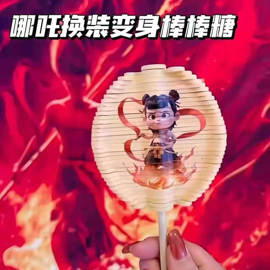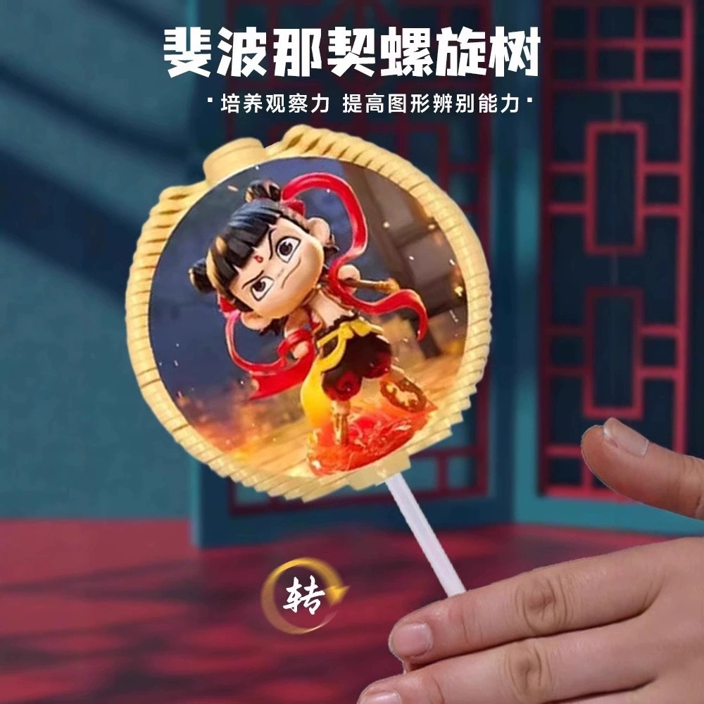 Guochao Labubu 회전 롤리팝 장난감, 네자 어린이용 ABS 스트레스 해소 교육용 장식품, 피보나치스토어 가기