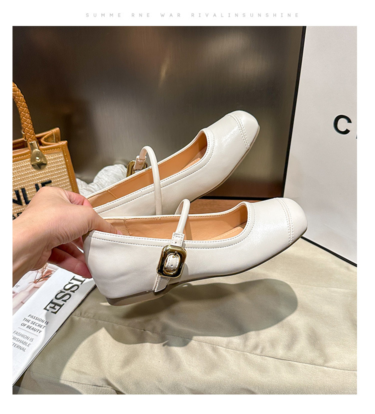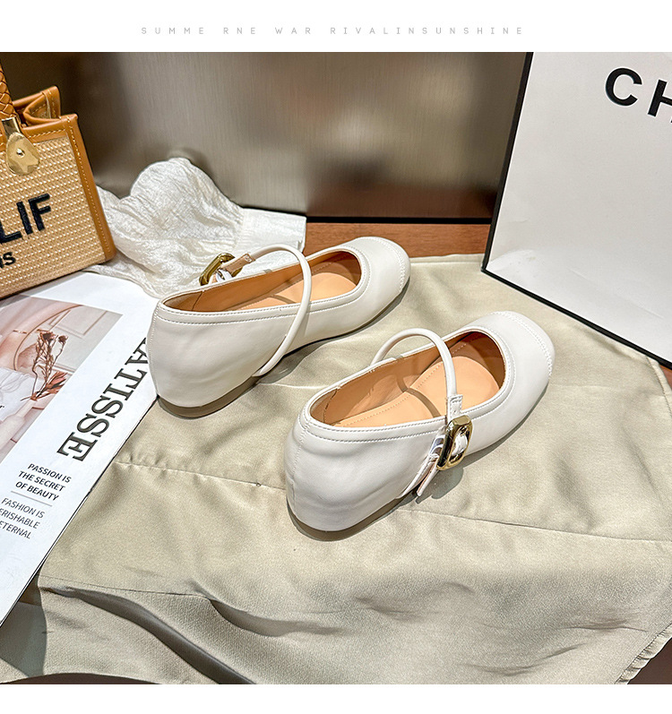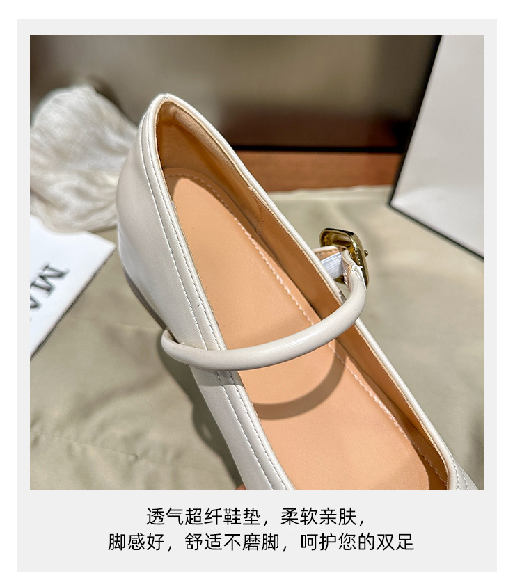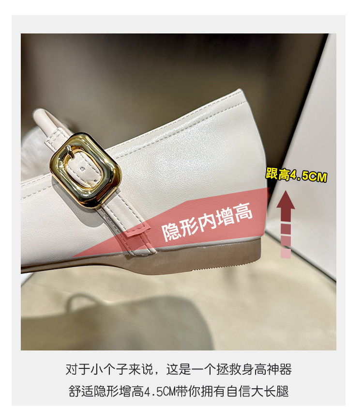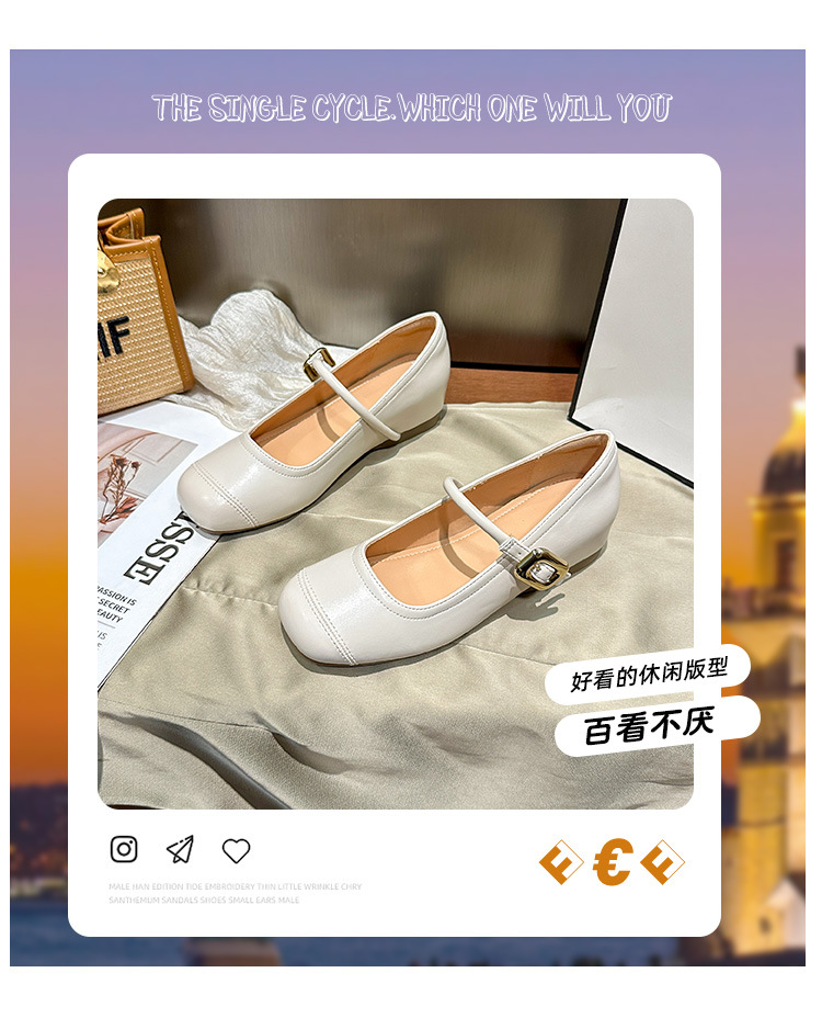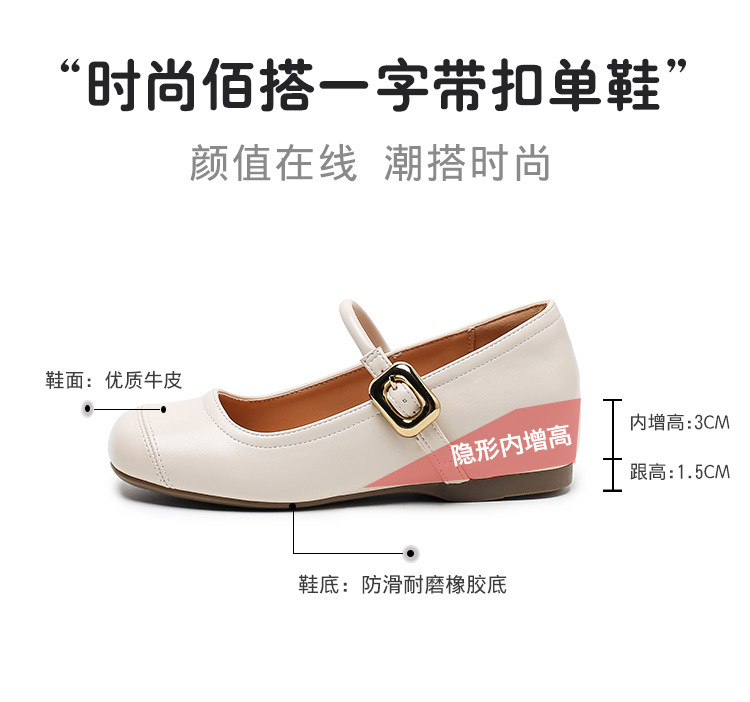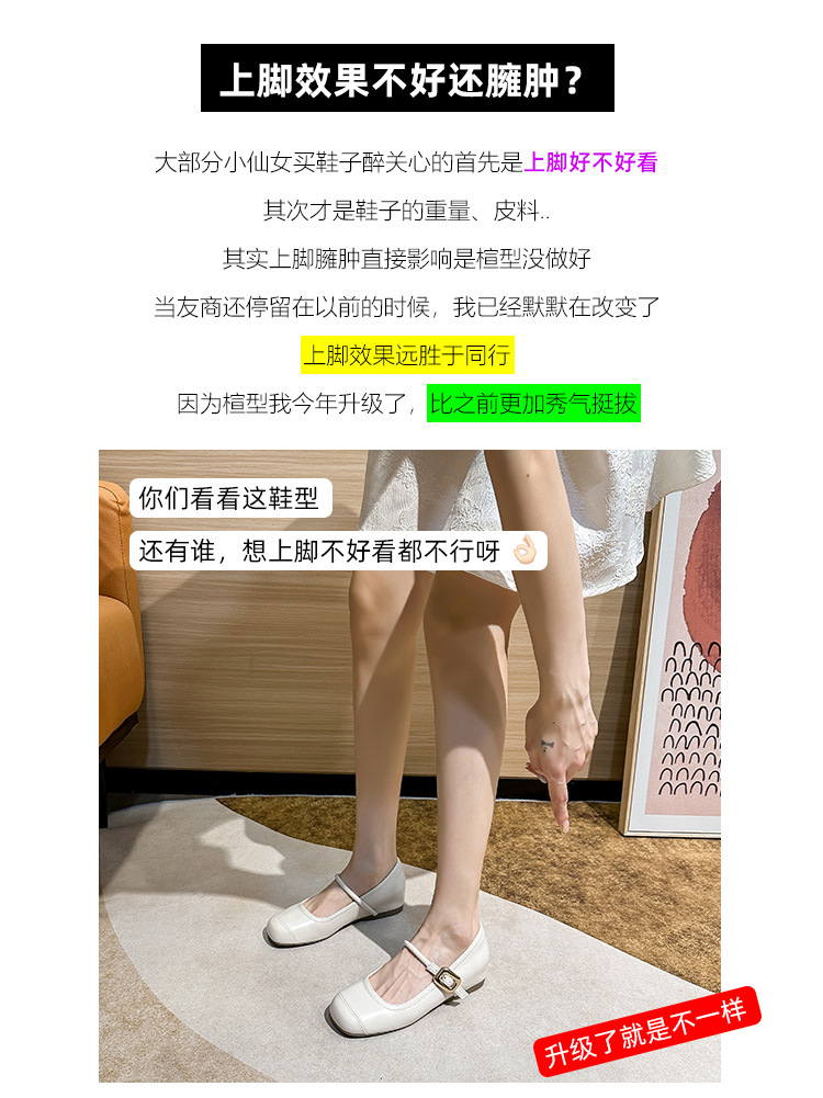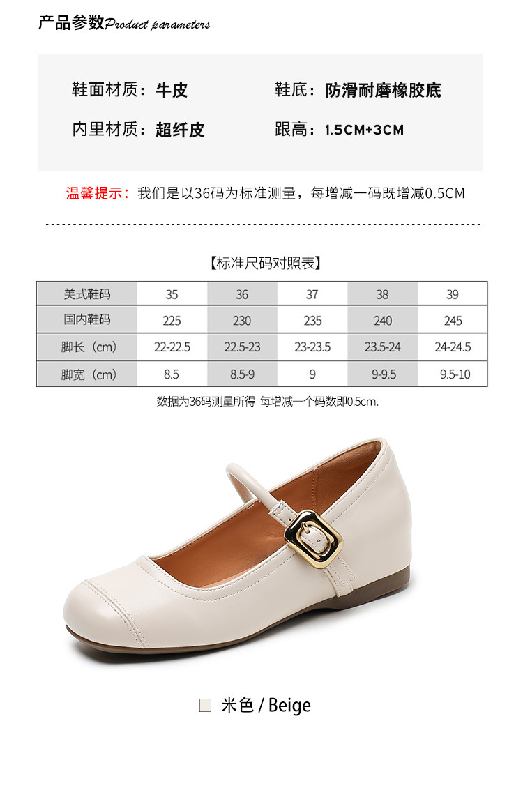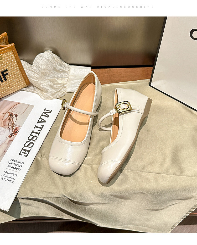 작은 내부 높이 5cm 발레 신발 스퀘어 버클 스트랩 복고풍 입 진품 가죽 메리 제인 신발 여성