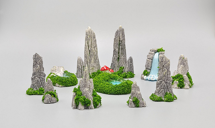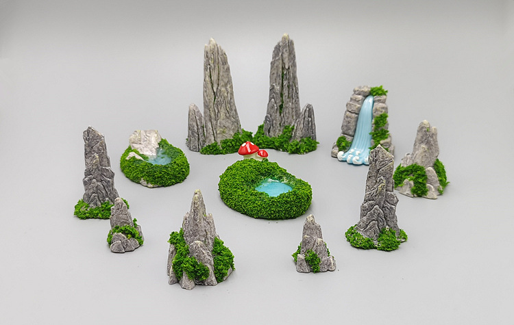 시뮬레이션 가짜 풍경 호수 폭포 돌 이끼 마이크로 풍경 원예 DIY 장식 액세서리 작은 장식품