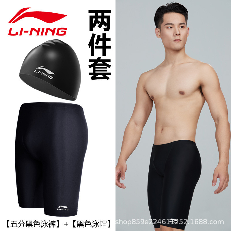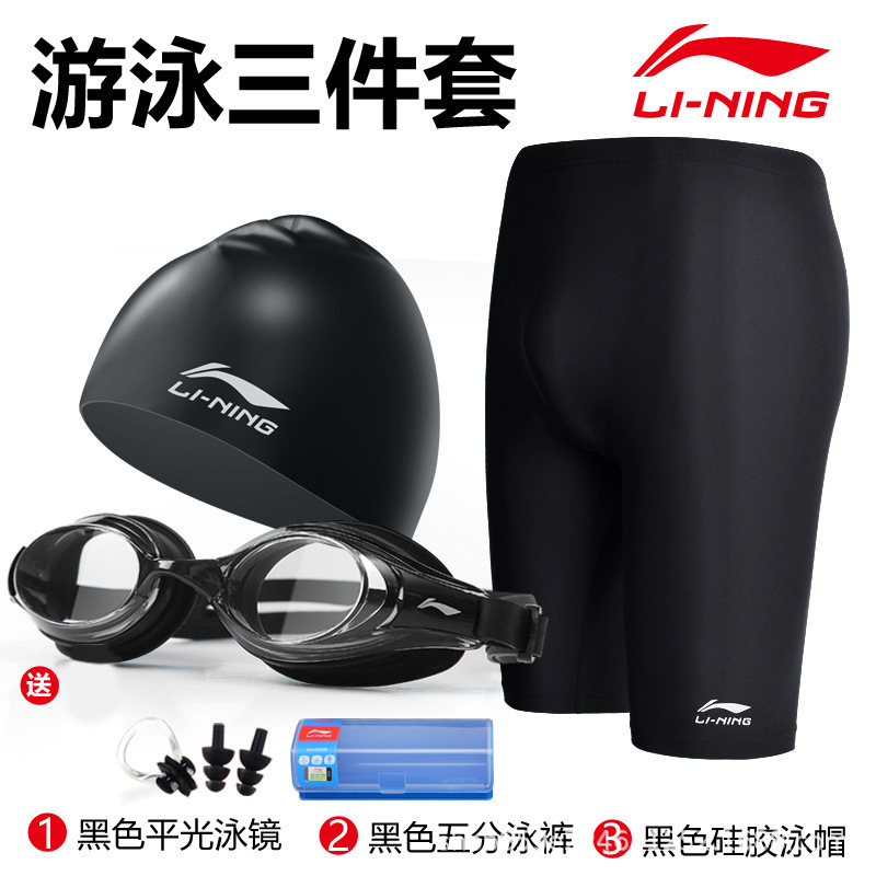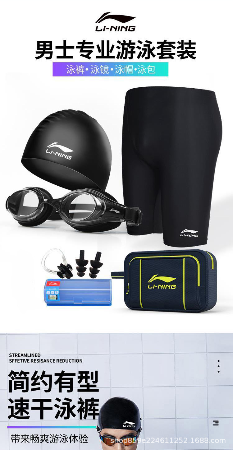 리닝 수영 트렁크 남자 수영복 세트 5 점 수영 트렁크 당황 방지 빠른 건조 수영 고글 수영 모자 전문 수영 장비스토어 가기